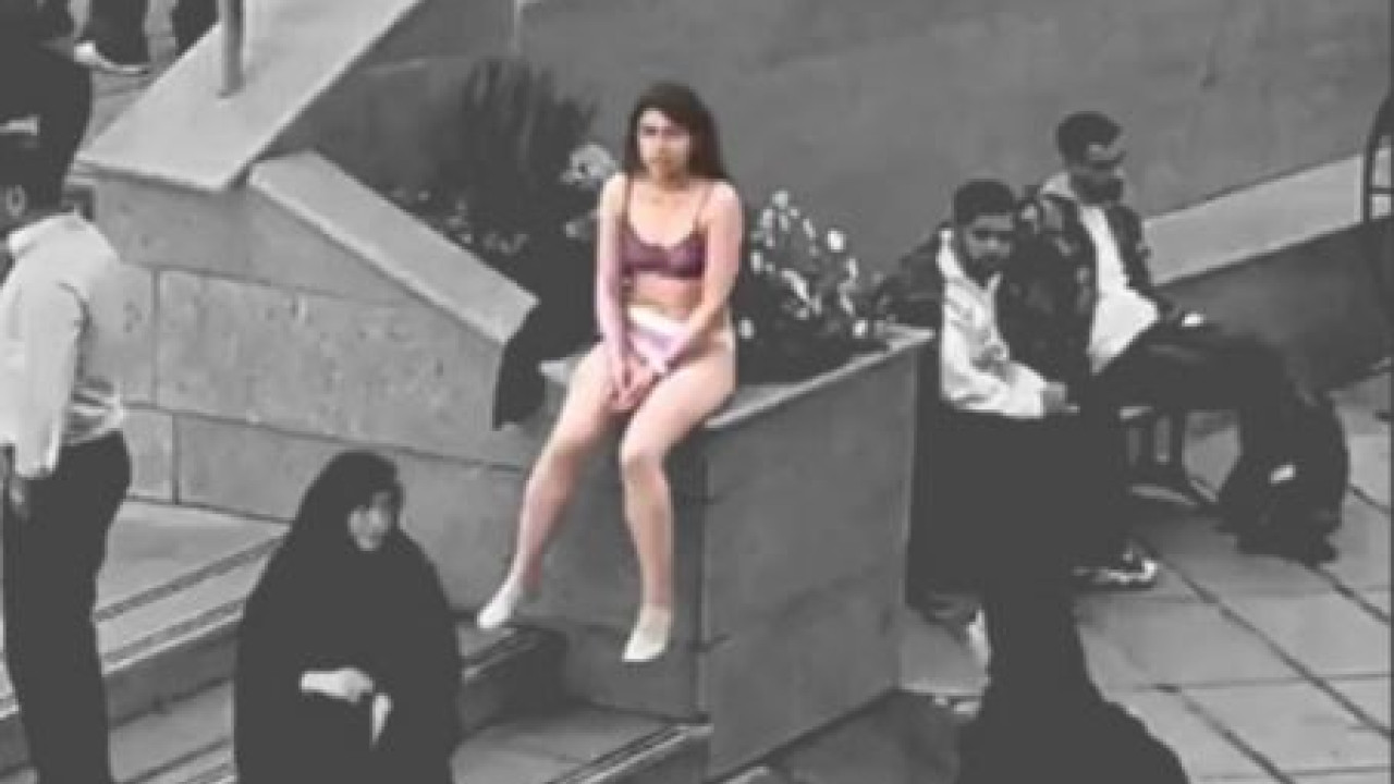 Η νεαρή φοιτήτρια στο ισλαμικό πανεπιστήμιο Επιστήμης και Έρευνας Αζάντ της Τεχεράνης έμεινε με τα εσώρουχα σε ένδειξη διαμαρτυρίας και περπάτησε μπροστά από το πανεπιστήμιο, πριν την συλλάβουν δια της βίας πράκτορες της ασφάλειας.