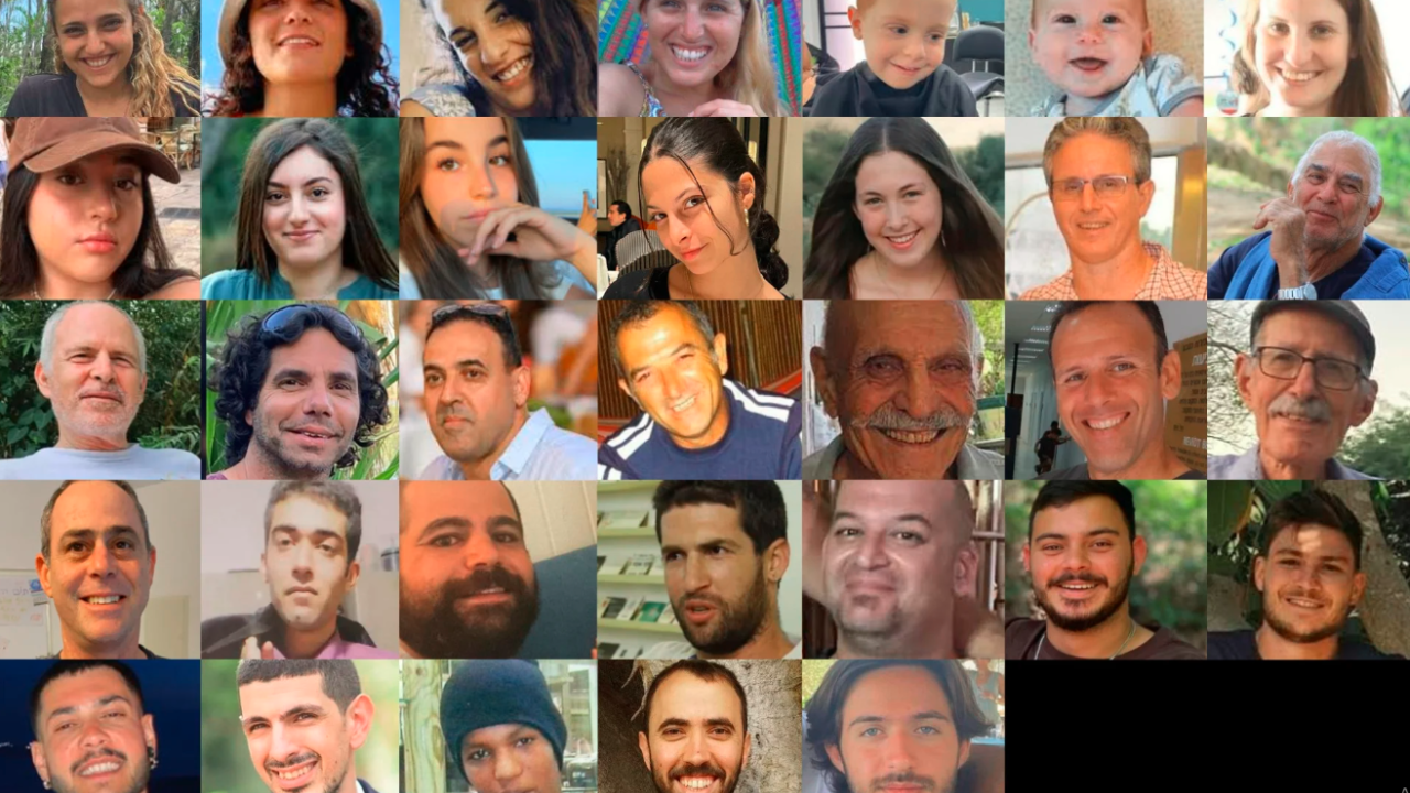 Τα ονόματα των ομήρων είναι: Liri Albag, Itzhak Elgarat, Karina Ariev, Ohad Ben Ami, Ariel Bibas, Yarden Bibas, Kfir Bibas, Shiri Bibas, Agam Berger, Gonen Romi, Daniella Gilboa, Emily Damari, Sagui Dekel Chen, Iair Horn, Omer Wenkert , Alexandre Sasha Troufanov, Arbel Yehoud, Ohad Yahalomi, Eliya Cohen, Or Levy, Naama Levy, Oded Lifshitz, Gadi Moshe Mozes, Avraham (Avera) Mengisto, Shlomo Mantzur, Keith Samuel Sigal, Tsachi Idan, Ofer Kalderon, Tal Shoham, Doron Steinbrecher, Omer Shem Tov, Hisham Sayed, Eli Sharabi.