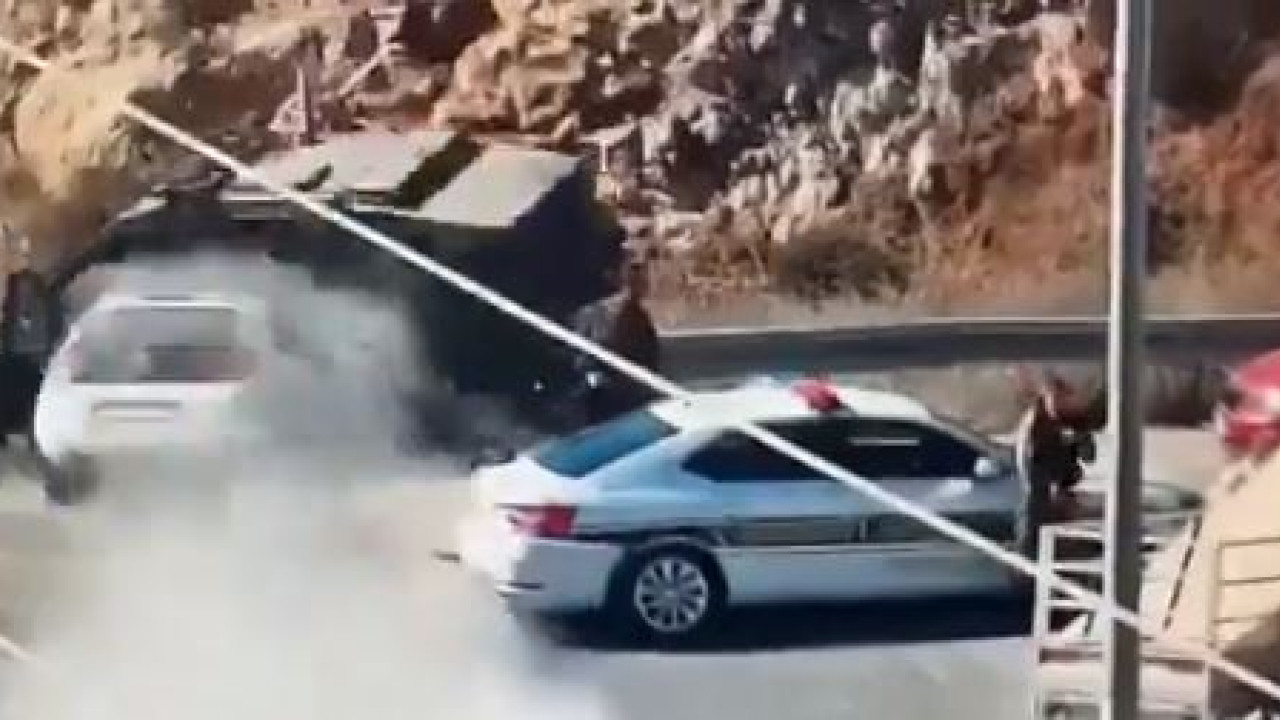 Το περιστατικό σημειώθηκε κοντά στην είσοδο του εβραϊκού οικισμού Όφρα – Αστυνομικός στέκεται δίπλα στο όχημα δευτερόλεπτα πριν από τη σύγκρουση