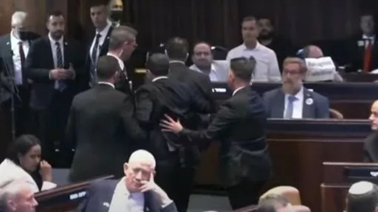 Ο πρόεδρος του κόμματος Αγιαμάν Οντέχ, απομακρύνθηκε από την ολομέλεια της Κνεσέτ, αφού σήκωσε μια πινακίδα που καλούσε τον Τραμπ να «αναγνωρίσει την Παλαιστίνη». Ο αραβοϊσραηλινός βουλευτής είναι ένθερμος υποστηρικτής της παλαιστινιακής κρατικής υπόστασης, την οποία απορρίπτει η κυβέρνηση του Ισραήλ.