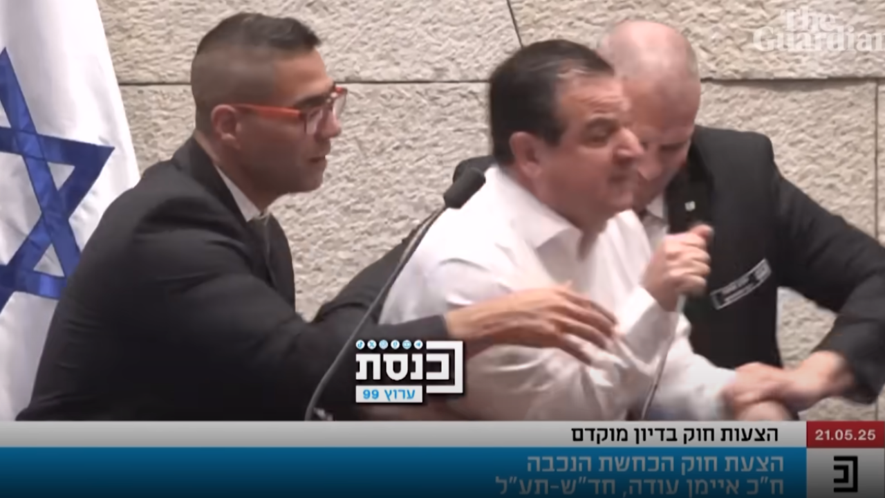 Καθώς ο Ayman Odeh ασκούσε κριτική στην κυβέρνηση βουλευτές της συμπολίτευσης του φωνάζουν να σταματήσει και να κατέβει. Εκείνος ωστόσο συνέχιζε μέχρι που μέλη της ασφάλειας της Βουλής μπήκαν στην αίθουσα, ανέβηκαν στο βήμα και τον απομάκρυναν βίαια.