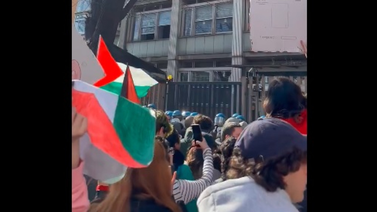 Scontri tra la Polizia e i manifestanti pro Palestina davanti alla sede Rai di Napoli#sanremo #ghali pic.twitter.com/ZGq0PuPVHW