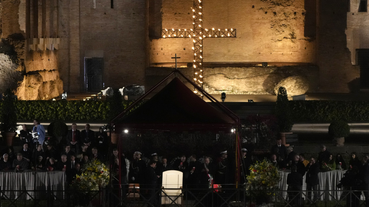 Ο πάπας Φραγκίσκος δεν χοροστατεί τελικά στην τελετή της «Οδού του Μαρτυρίου» που ξεκίνησε νωρίτερα στο Κολοσσαίο. Πρόκειται για αλλαγή προγράμματος της τελευταίας στιγμής, δεδομένου ότι μέχρι σήμερα το πρωί από το Βατικανό διέρρεε ότι ο ποντίφικας θα ήταν παρών. Ο ‘Αγιος Πατέρας των Καθολικών παρακολουθεί όλη την τελετή από το μοναστήρι της Αγίας Μάρθας στο Βατικανό, όπου διαμένει.