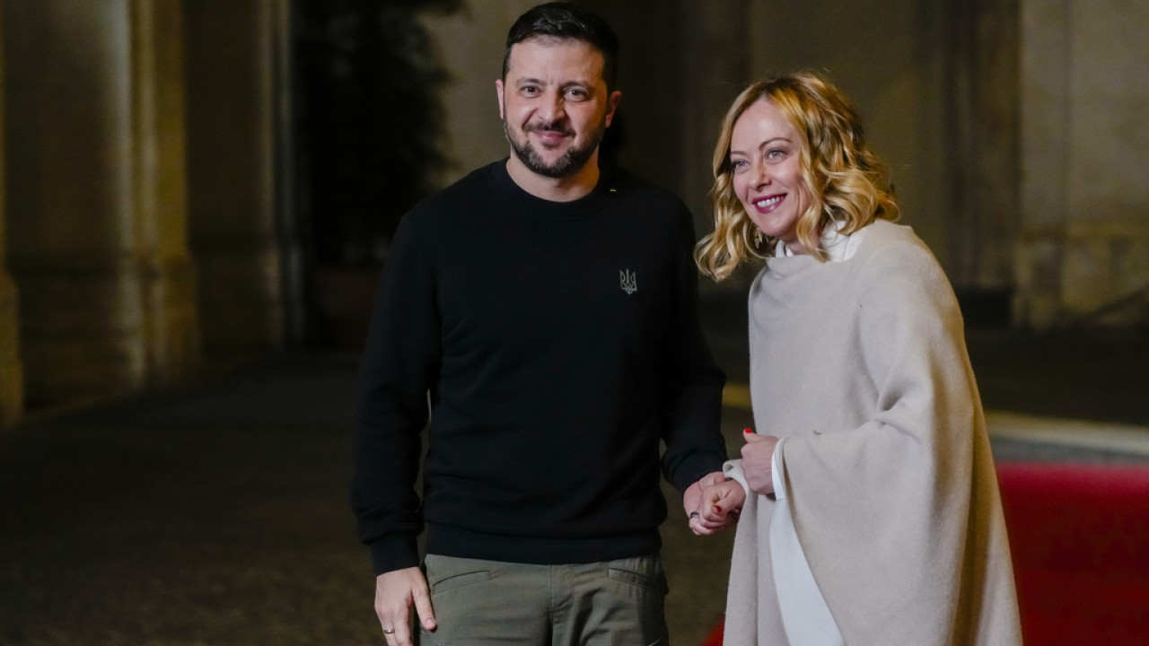 Η Ιταλίδα πρωθυπουργός Τζόρτζια Μελόνι συναντήθηκε απόψε με τον πρόεδρο της Ουκρανίας Βολοντίμιρ Ζελένσκι, στο κυβερνητικό μέγαρο της Ρώμης Παλάτσο Κίτζι.
