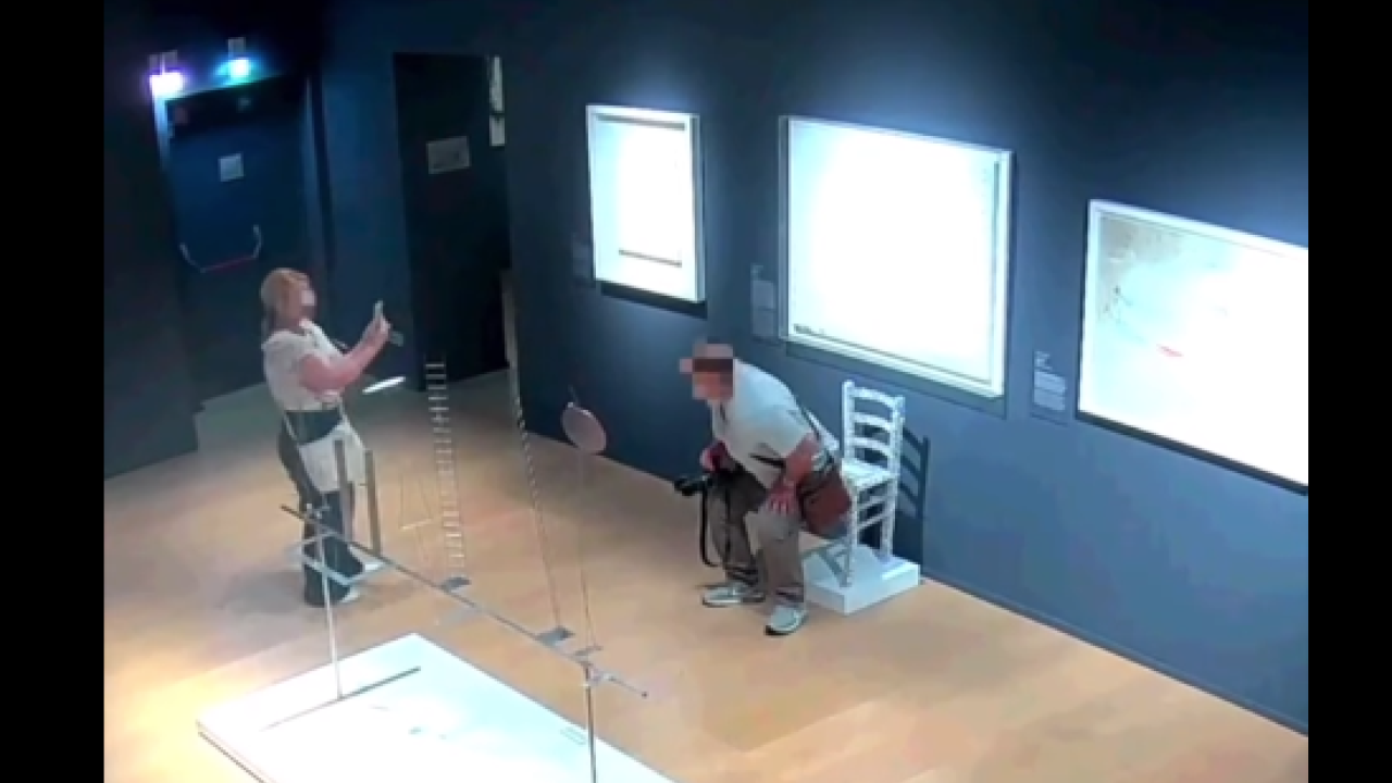Η καρέκλα, φτιαγμένη από εκατοντάδες κρύσταλλα Swarovski, υπέστη ζημιά λόγω του βάρους του άνδρα. Το περιστατικό καταγράφηκε από τις κάμερες ασφαλείας του μουσείου.