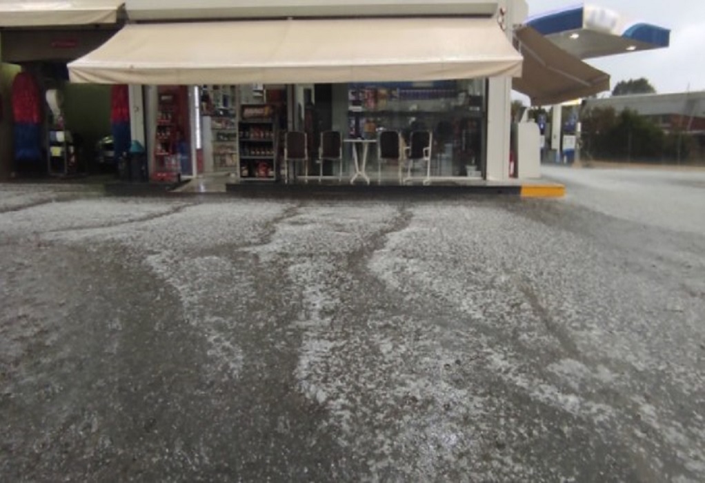 Λίγο μετά τις 17:30 η αρχική βροχή μετατράπηκε σε καταιγίδα και λίγο αργότερα «άσπρισαν» οι δρόμοι από το χαλάζι, το οποίο έπεφτε για αρκετή ώρα.