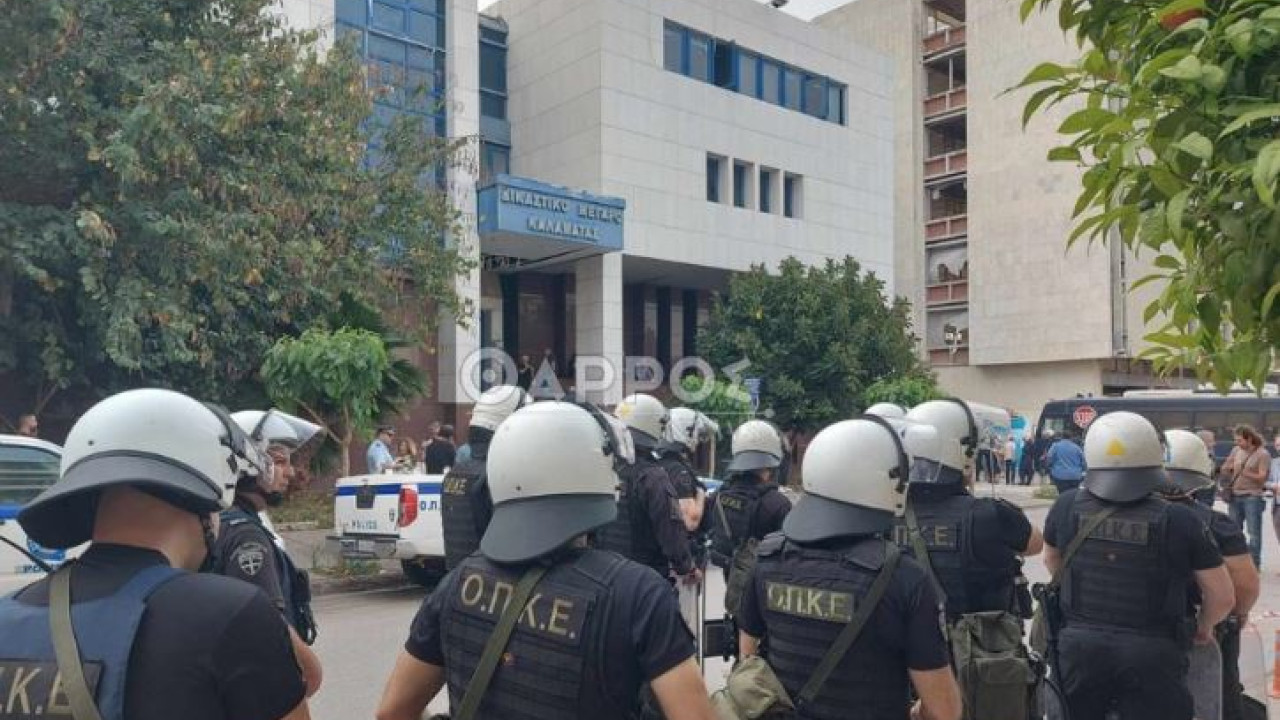 Από το πρωί, αποκλεισμένος παραμένει ο χώρος έξω από το δικαστικό μέγαρο της Καλαμάτας, καθώς αναμένεται να ξεκινήσει η δίκη των 9 Αιγυπτίων που κατηγορούνται ως διακινητές του πολύνεκρου ναυαγίου ανοιχτά της Πύλου