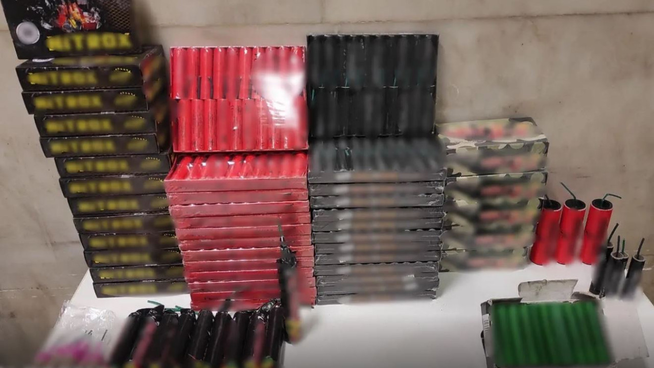 Κατά τον έλεγχο βρέθηκαν εντός των σακιδίων και κατασχέθηκαν 26 συσκευασίες, που είχαν 20 βεγγαλικά η κάθε μία και κινητό τηλέφωνο, ενώ σε έρευνα στο σπίτι του βρέθηκαν επιπλέον και κατασχέθηκαν 788 βεγγαλικά.
