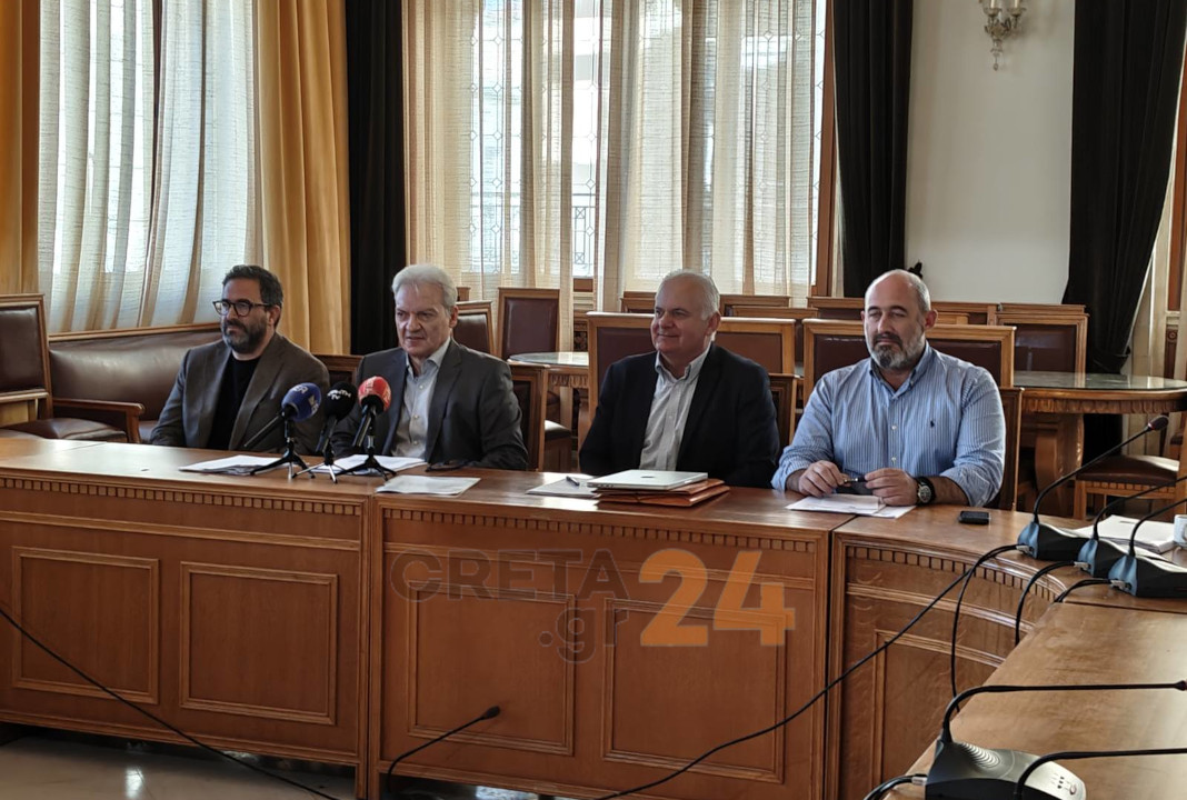 Ο Δήμαρχος Ηρακλείου και οι Αντιδήμαρχοι Οικονομικών & Τουρισμού, Γιώργος Αγριμανάκης, Τεχνικών Υποδομών & Βιώσιμης Κινητικότητας, Γιώργος Σισαμάκης και Καθαριότητας, Περιβάλλοντος & Ενέργειας Νίκος Γιαλιτάκης παρουσιάζουν αναλυτικά τις προτάσεις για τα δημοτικά τέλη.
