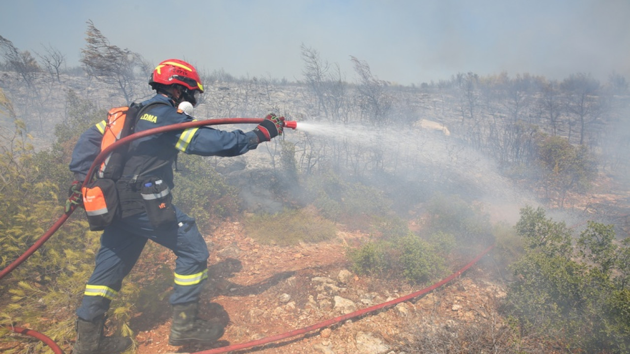 Ειδικότερα, επιχειρούν 54 πυροσβέστες, 2 πεζοπόρα τμήματα, 14 οχήματα, καθώς και 5 αεροσκάφη και 1 ελικόπτερο.