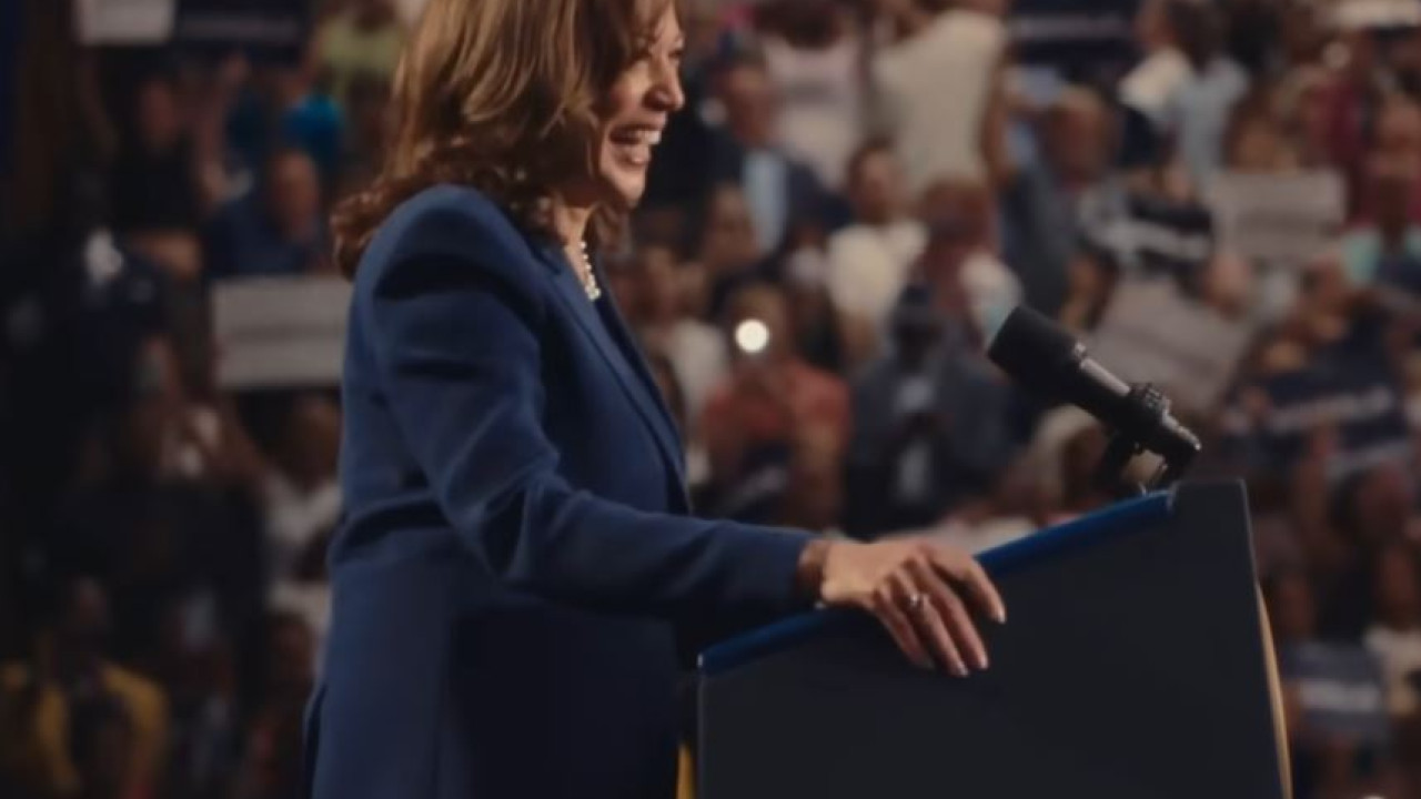 Το βίντεο δείχνει τη Χάρις στην πρώτη της μεγάλη συγκέντρωση στο Μιλγουόκι του Ουισκόνσιν, αυτή την εβδομάδα, σε συνδυασμό με εικόνες του Τραμπ και του υποψηφίου του Τζ. Ντι Βανς προκειμένου να υπογραμμιστεί η αντίθεση ενόψει των εκλογών του Νοεμβρίου.