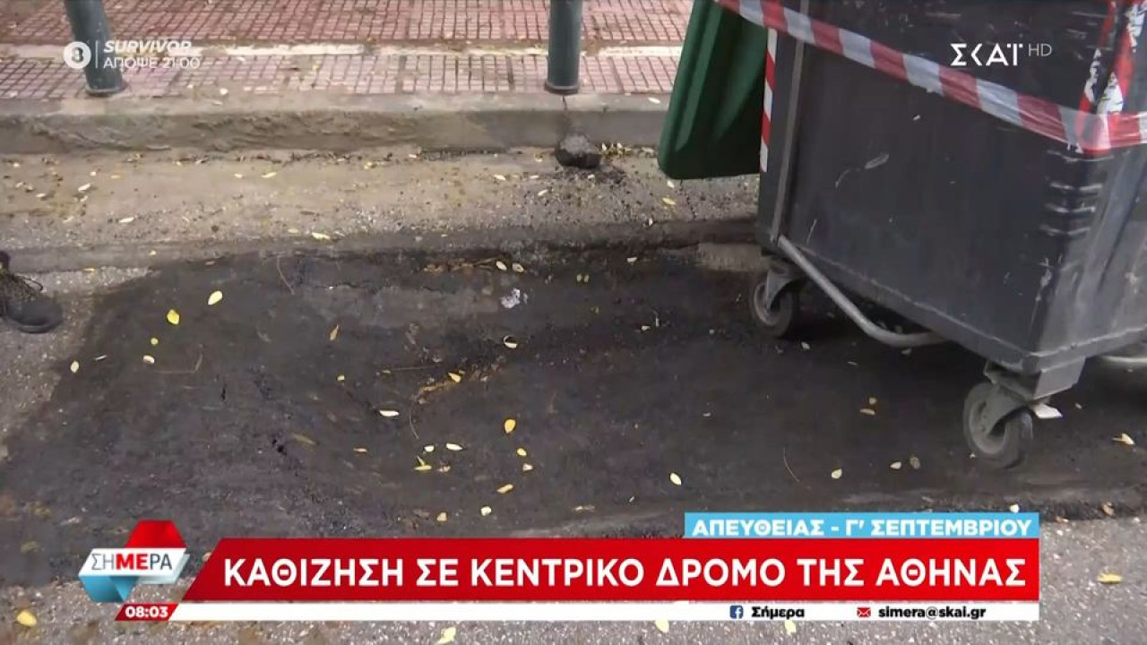 Σύμφωνα με καταγγελία στον ΣΚΑΪ, στη συμβολή των οδών Αβέρωφ και Τρίτης Σεπτεμβρίου στο κέντρο της Αθήνας το οδόστρωμα έχει υποχωρήσει, με αποτέλεσμα να υπάρχει καθίζηση στον δρόμο και η κυκλοφορία των οχημάτων να έχει διακοπεί.
