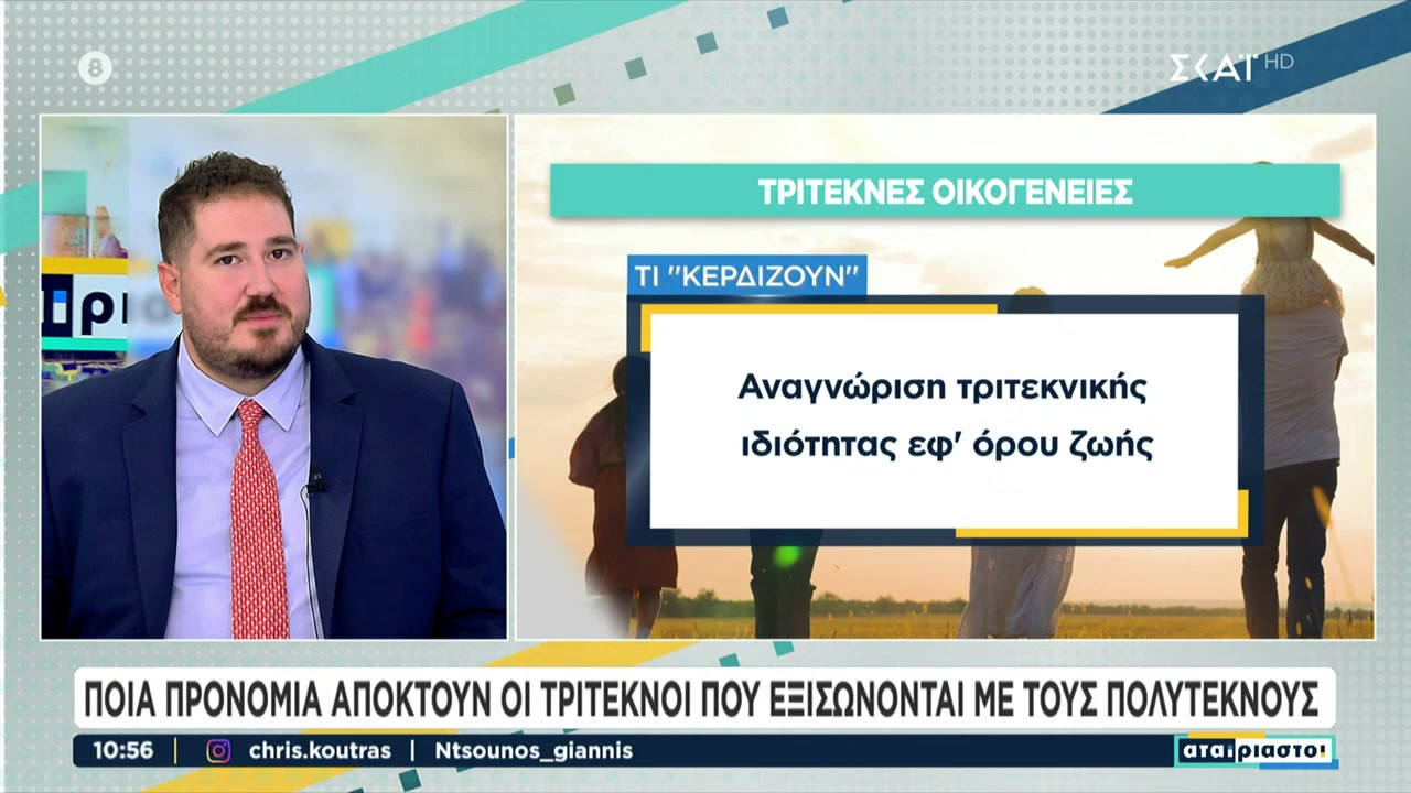 Απάντηση στο αν οι τρίτεκνοι θα μπορούν να παίρνουν αυτοκίνητο χωρίς δασμούς, όπως ισχύει με τους πολύτεκνους, έδωσε ο Γενικός Γραμματέας Δημογραφικής και Στεγαστικής Πολιτικής, Κωνσταντίνος Γλούμης, έπειτα από σχετική καταγγελία που έφτασε στον ΣΚΑΪ.