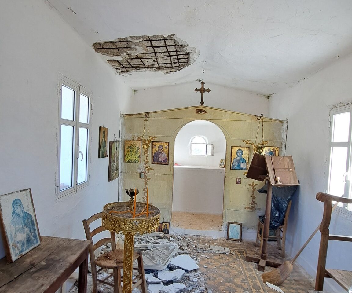 Kατέρρευσε μεγάλο τμήμα της στέγης του Ιερού Ναού Αγίων Θεοδώρων στο νησάκι Θοδωρού, ανοιχτά των Χανίων.