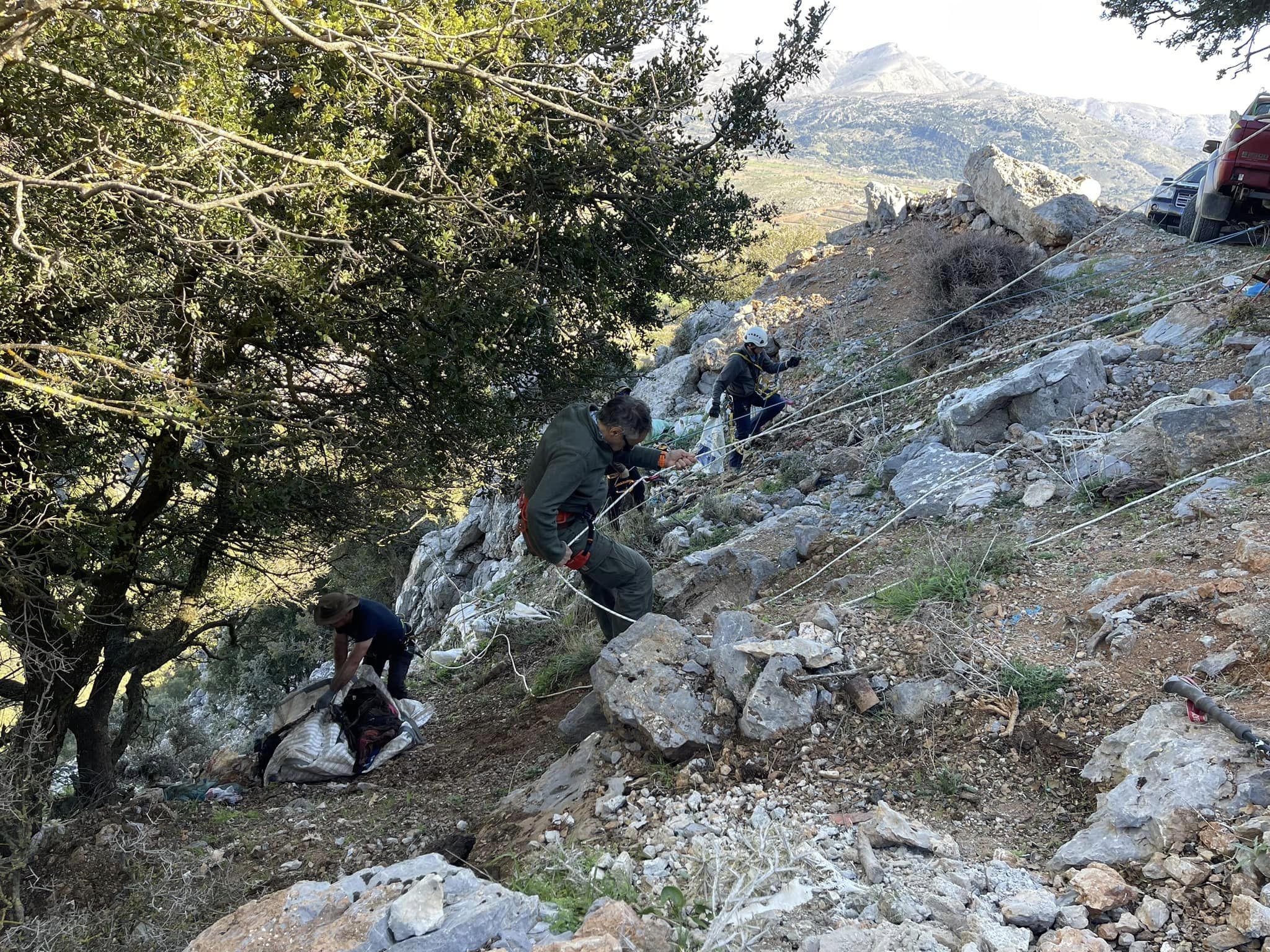 Επίσης ευχαριστεί τα μέλη του ΕΟΣ Λασιθίου για το χρόνο και τη συμβολή τους στην επιχείρηση καθαρισμού της απότομης πλαγιάς.