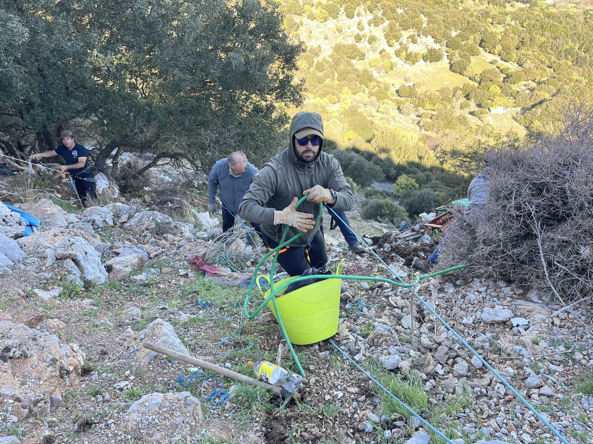 Επιχείρηση καθαρισμού στη θέση «του Μηλάκη ο δέτης» πραγματοποιήθηκε το Σάββατο από το Δήμο Οροπεδίου Λασιθίου και μέλη του Ορειβατικού Συλλόγου Λασιθίου.