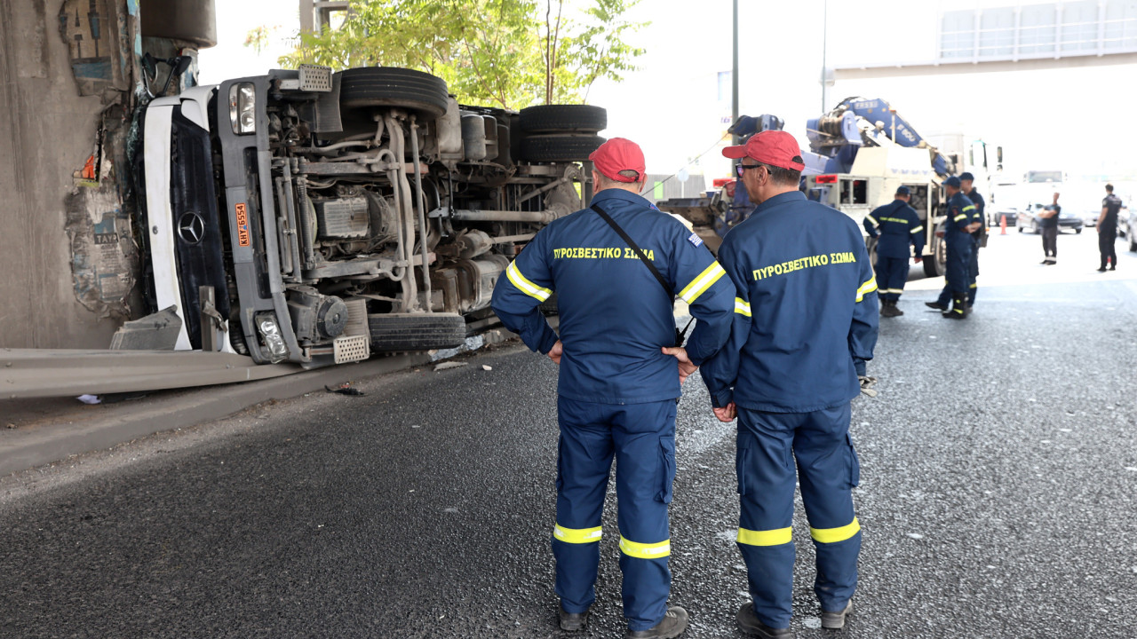 Νταλίκα ανατράπηκε στον Κηφισό, στο ρεύμα προς Λαμία, με αποτέλεσμα να δημιουργηθεί μεγάλο μποτιλιάρισμα.