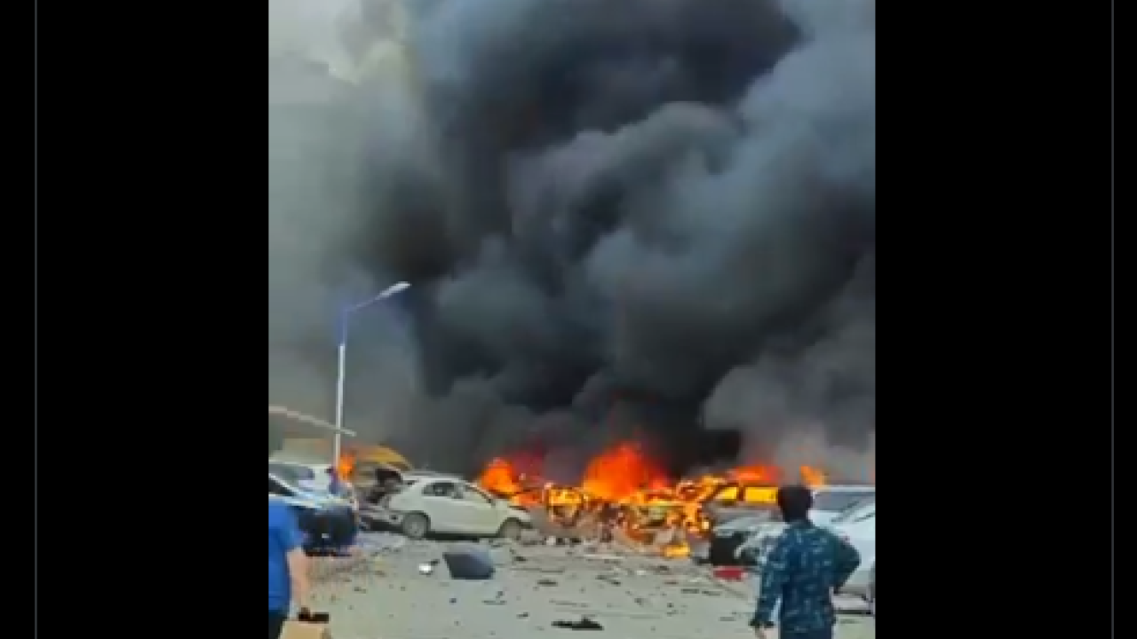 Οπτικό υλικό που κυκλοφόρησε στο μέσο κοινωνικής δικτύωσης Weibo, τη γνησιότητα του οποίου δεν έχει ωστόσο πιστοποιήσει το Reuters, δείχνει πολλά οχήματα να έχουν τυλιχθεί στις φλόγες έξω από ένα κτίριο και πυκνό καπνό να βγαίνει από αυτοκίνητα και από τα παράθυρα κάποιων κατοικιών.