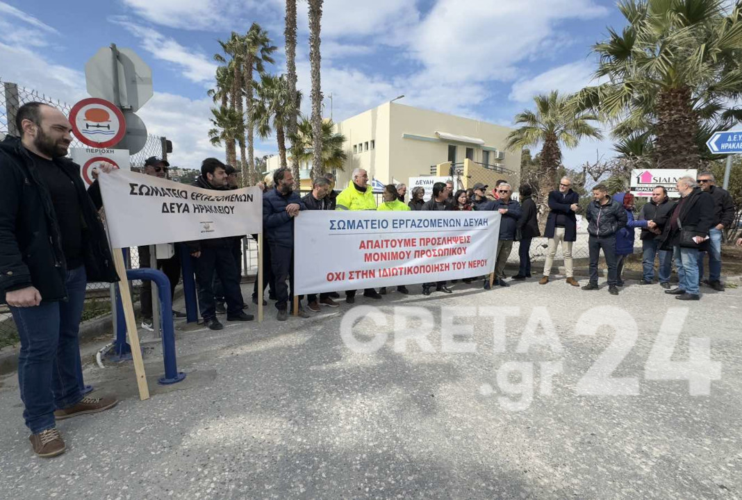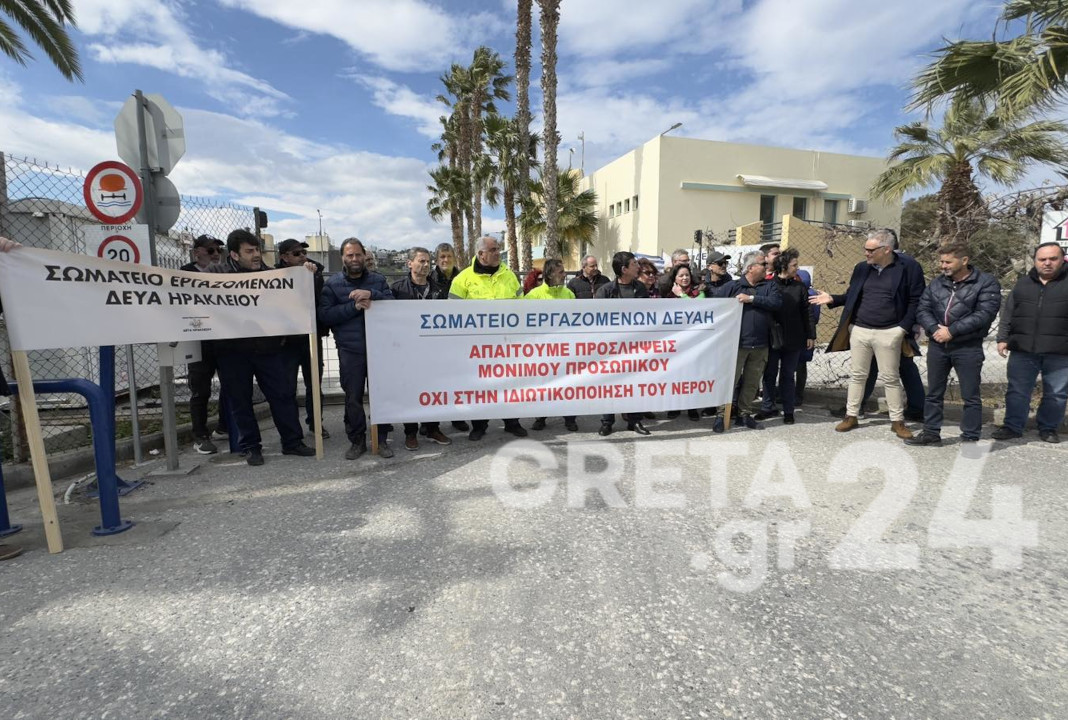 Σε κινητοποίηση προχώρησαν το μεσημέρι της Πέμπτης οι εργαζόμενοι στην ΔΕΥΑ Ηρακλείου, διαμαρτυρόμενοι για το νομοσχέδιο για τις ΔΕΥΑ το οποίο βρίσκεται σε δημόσια διαβούλευση, με το οποίο όπως τονίζουν επιχειρείται η ιδιωτικοποίηση του νερού αλλά και η υπαγωγή όλων των ΔΕΥΑ της χώρας στην ΕΥΔΑΠ.