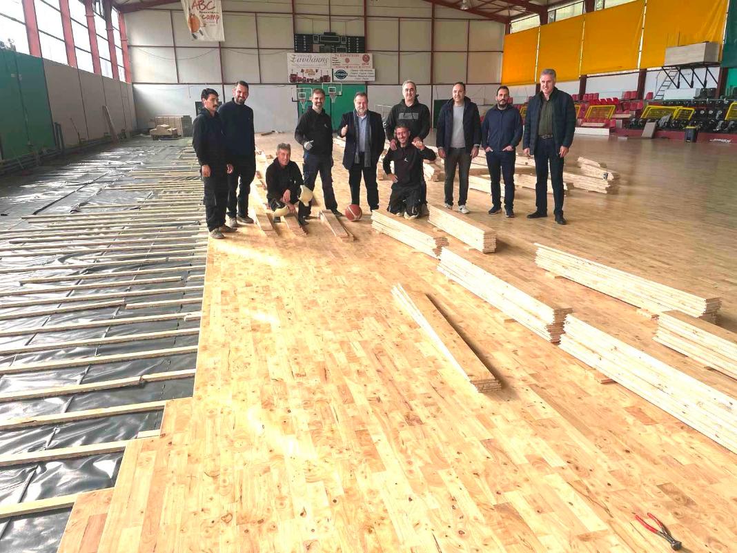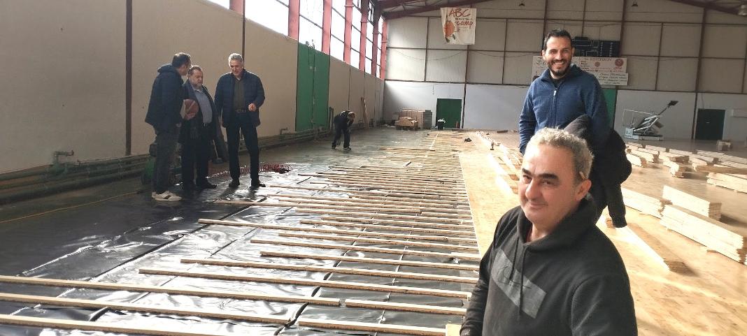 Συνεχίζονται οι εργασίες αναβάθμισης και συντήρησης του Κλειστού Γυμναστηρίου Καλαθοσφαίρισης Αρκαλοχωρίου. Αυτές τις ημέρες αντικαθίσταται το παλιό δάπεδο και στη θέση του τοποθετείται νέο ξύλινο FIBA 1072 τ.μ..