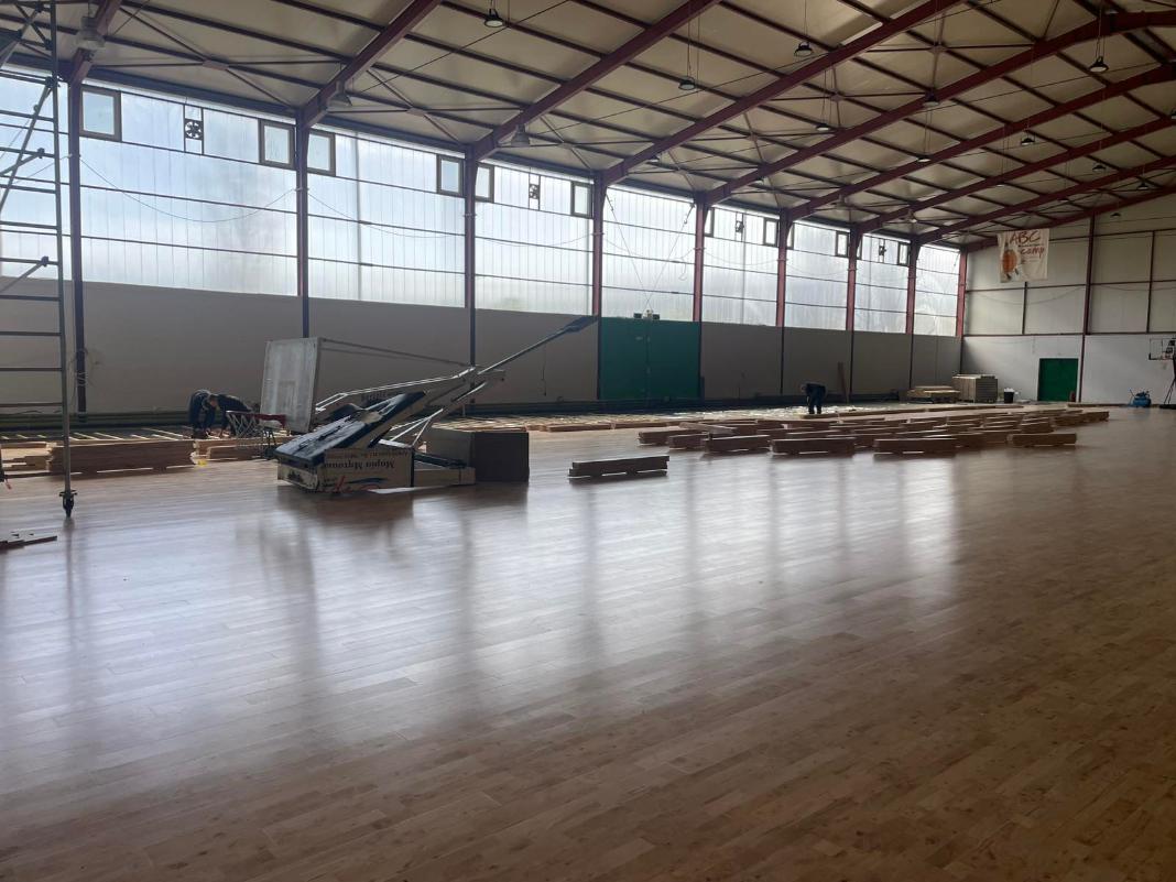 Συνεχίζονται οι εργασίες αναβάθμισης και συντήρησης του Κλειστού Γυμναστηρίου Καλαθοσφαίρισης Αρκαλοχωρίου. Αυτές τις ημέρες αντικαθίσταται το παλιό δάπεδο και στη θέση του τοποθετείται νέο ξύλινο FIBA 1072 τ.μ..