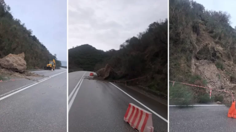 Σοβαρό περιστατικό σημειώθηκε στην Εθνική Οδό Ηγουμενίτσας – Μαυροματίου, στον δρόμο που οδηγεί προς το τελωνείο με την Αλβανία, όταν τεράστιος βράχος αποκολλήθηκε από πρανές και κατέληξε στο οδόστρωμα, παρασύροντας χώματα και πέτρες.