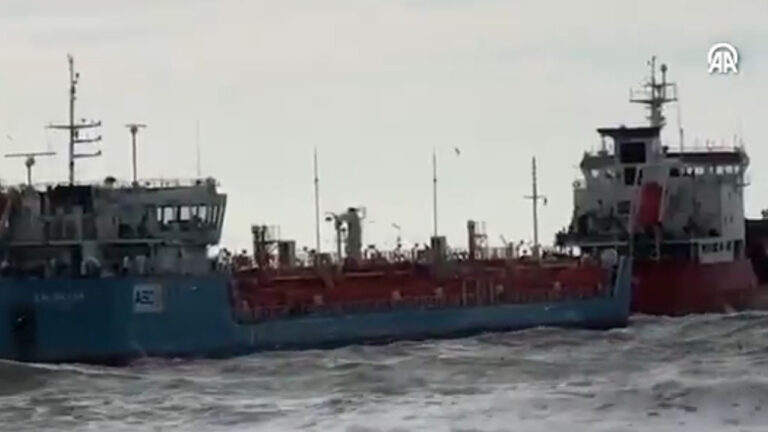 VİDEO – #İstanbul Küçükçekmece açıklarında iki tanker birbirine temas etti