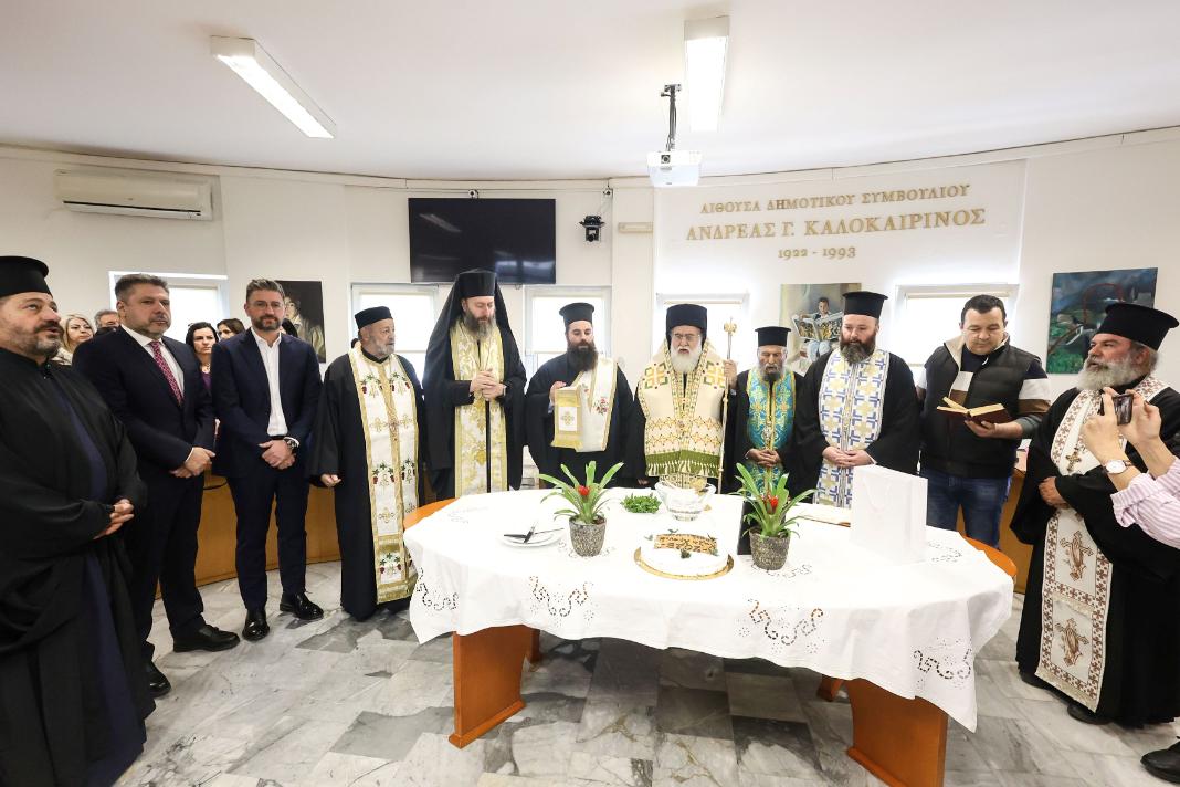 Τον Αγιασμό κατά την κοπή της πρωτοχρονιάτικης πίτας στην αίθουσα του Δημοτικού Συμβουλίου τέλεσε ο Επίσκοπος Κνωσού κ.κ. Μεθόδιος, ο Αρχιερατικός Επίτροπός Μαλεβιζίου Γεώργιος Ματαλλιωτάκης και οι π. Χρυσόστομος Νικάκης,π. Εμμανουήλ Ξυλούρης, π.Ευάγγελος Παπουτσάκης, π. Μιχαήλ Μανιαδής, π. Κωνσταντίνος Πετούσης, ενώ το παρών έδωσαν ο βουλευτής Ηρακλείου Μάξιμος Σενετάκης, ο Πρόεδρος του Δημοτικού Συμβουλίου Ελευθέριος Καλλέργης, Αντιδήμαρχοι, Πρόεδροι και Αντιπρόεδροι δημοτικών Οργανισμών και Επιχειρήσεων, Πρόεδροι Τοπικών Κοινοτήτων, Δημοτικοί Σύμβουλοι και εργαζόμενοι του Δήμου Μαλεβιζίου.