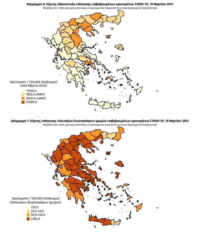 Οι νέοι θάνατοι ασθενών με COVID-19 είναι 64, ενώ από την έναρξη της επιδημίας έχουν καταγραφεί συνολικά 7.361 θάνατοι. Το 95.8% είχε υποκείμενο νόσημα ή/και ηλικία 70 ετών και άνω.