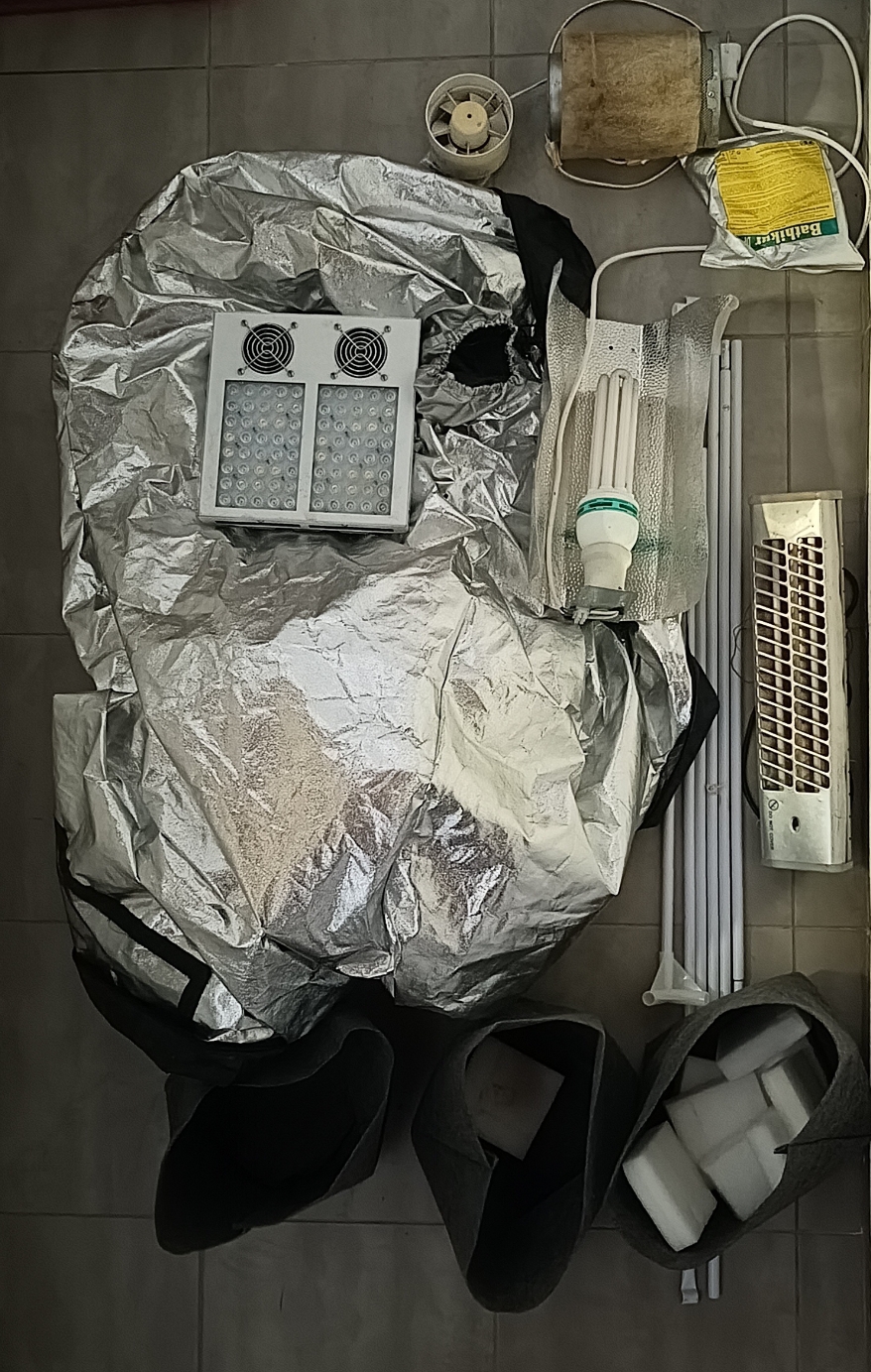 Επίσης κατασχέθηκαν πλήρης εξοπλισμός καλλιέργειας κάνναβης εσωτερικού χώρου και Ι.Χ.Ε. αυτοκίνητο.