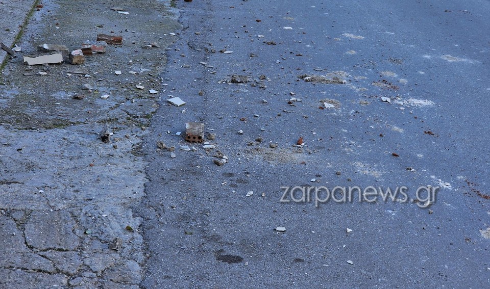 Συγκεκριμένα, μεγάλο κομμάτι από ταράτσα σπιτιού έσπασε και έπεσε τόσο στο μπαλκόνι του κτηρίου, όσο και στο δρόμο. Μάλιστα, σύμφωνα με αυτόπτες μάρτυρες, ένα κομμάτι έπεσε σε διερχόμενο όχημα προκαλώντας υλικές ζημιές.