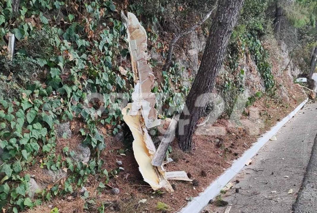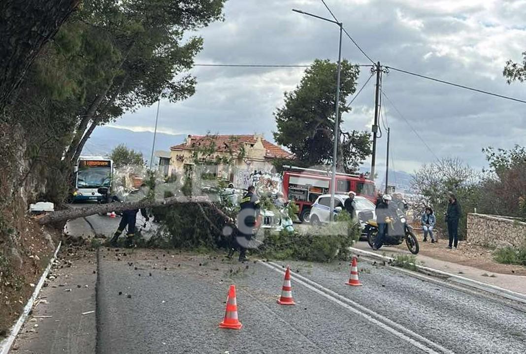 Πιο συγκεκριμένα κάτω από αδιευκρίνιστες συνθήκες κλαδί πεύκου έπεσε πάνω σε διερχόμενο φορτηγό και στη συνέχεια χτύπησε ΙΧ αυτοκίνητο που βρισκόταν πίσω από το φορτηγό.