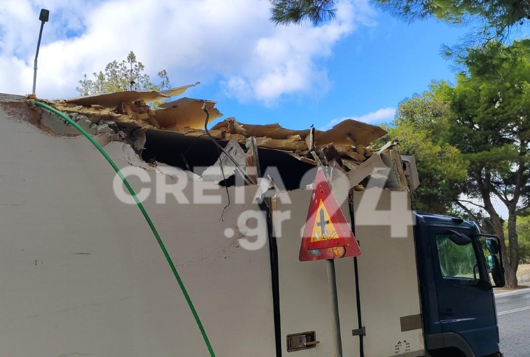 Ευτυχώς δεν σημειώθηκε κανένας τραυματισμός, ωστόσο προκλήθηκαν υλικές ζημιές στην οροφή του φορτηγού.