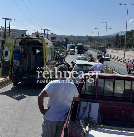 Τροχαίο ατύχημα σημειώθηκε νωρίτερα το μεσημέρι της Τετάρτης 2 Ιουλίου στην παράλληλη της Εθνική οδού Ρεθύμνου – Χανίων κοντά στον κόμβο Ατσιποπούλου.