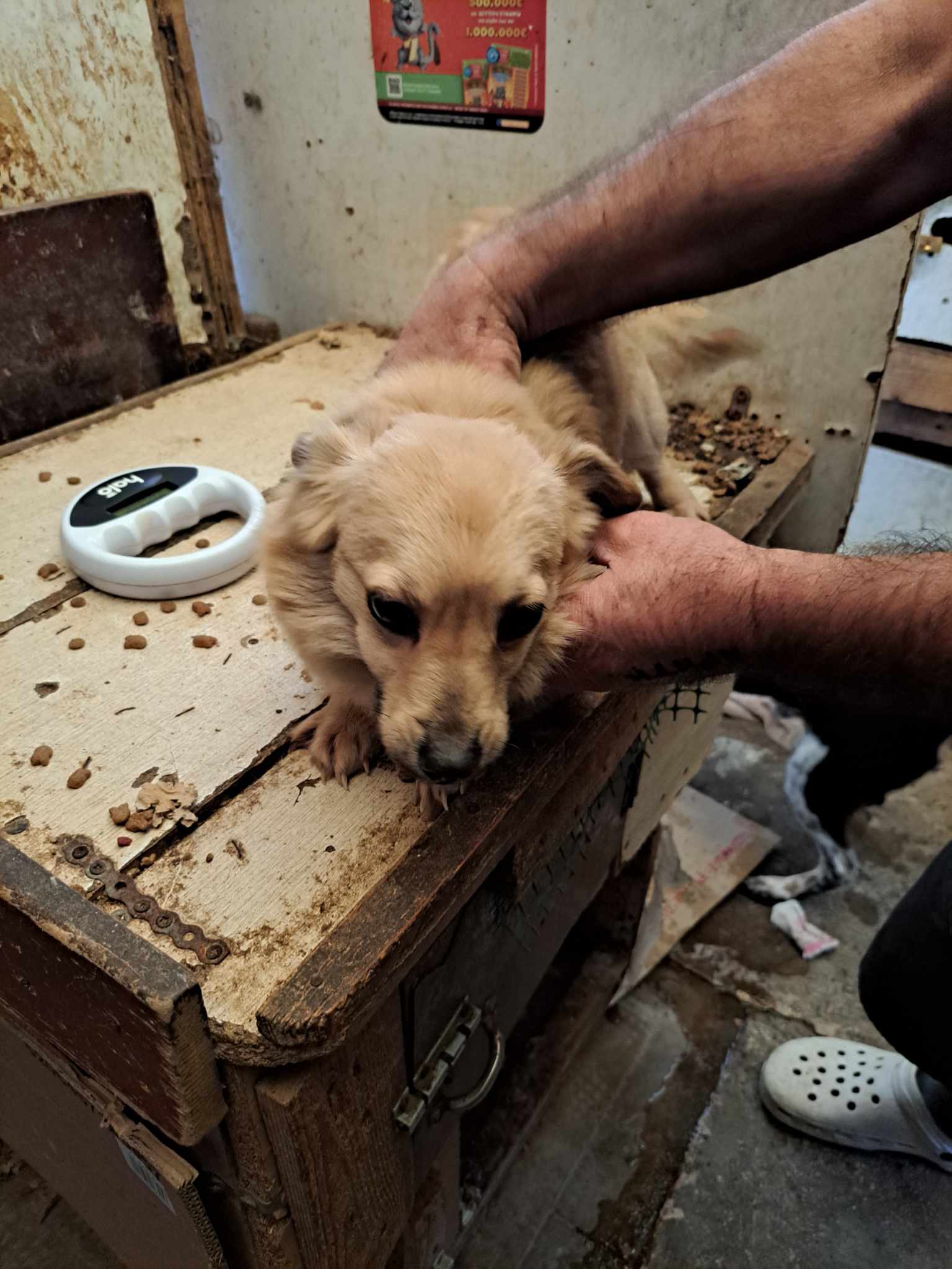 Επίσης υπήρχαν 2 σκυλιά περίπου 4 κιλών μέσα σε ένα στενό κλουβί 1Χ1 που δεν τους επέτρεπε καμία κίνηση, 3 σκυλιά δεμένα στον κήπο, και άλλα 5 σκυλιά δεμένα στις καρέκλες και το τραπέζι της κουζίνας του σπιτιού, όλα μικρόσωμα (6-7 κιλά) όλα με τσίβες και βρώμικα.