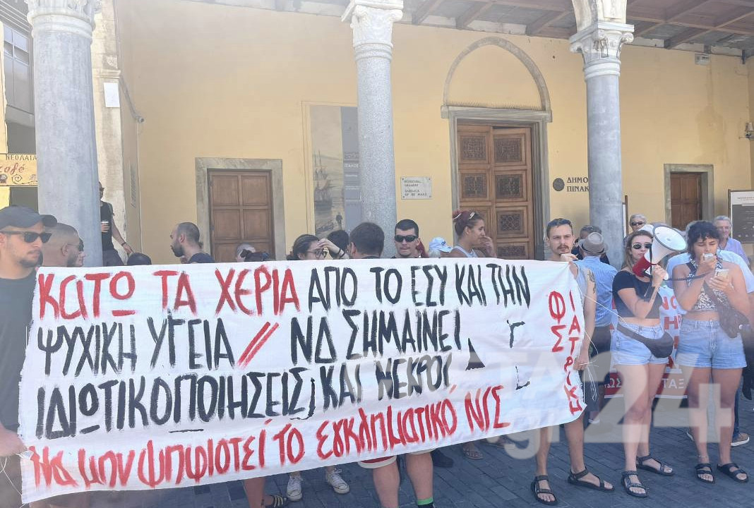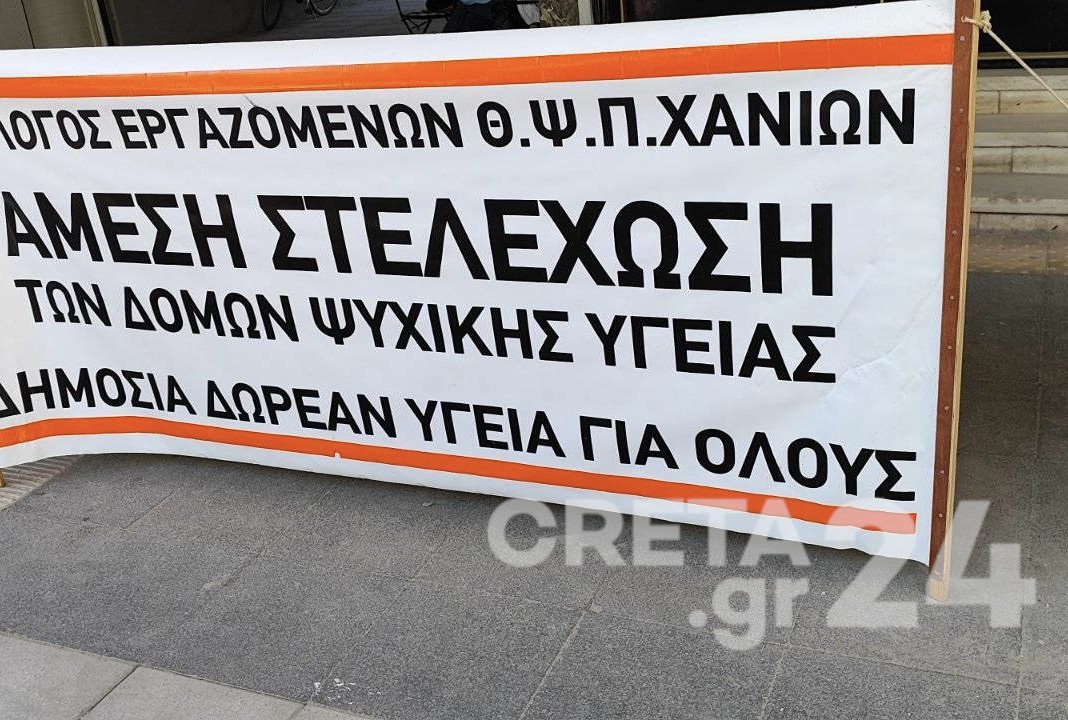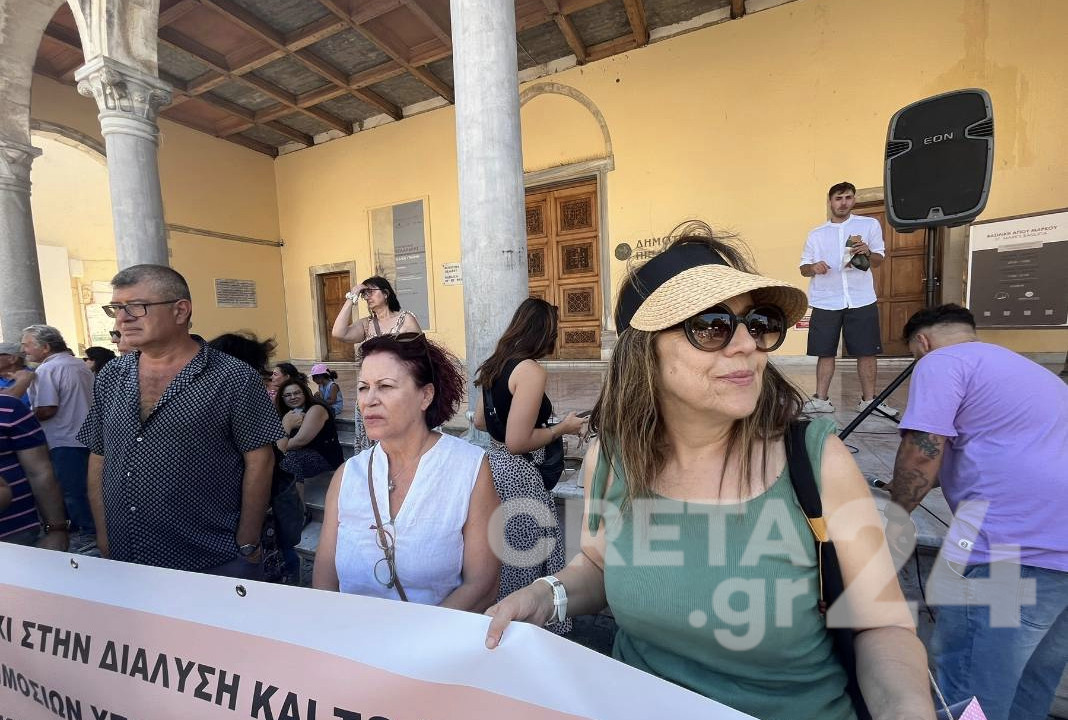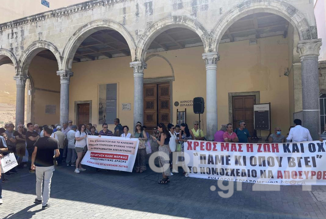 Αντίστοιχη κινητοποίηση πραγματοποιήθηκε και στα Χανιά, μπροστά από το δημαρχείο της πόλης.