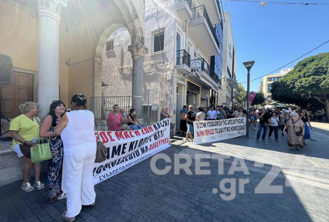 Στο Ηράκλειο, νοσοκομειακοί γιατροί, εργαζόμενοι στα νοσοκομεία και το ΚΕΘΕΑ πραγματοποίησαν συγκέντρωση διαμαρτυρίας στην πλατεία των Λιονταριών, ενώ ακολούθησε πορεία στους δρόμους του κέντρου.