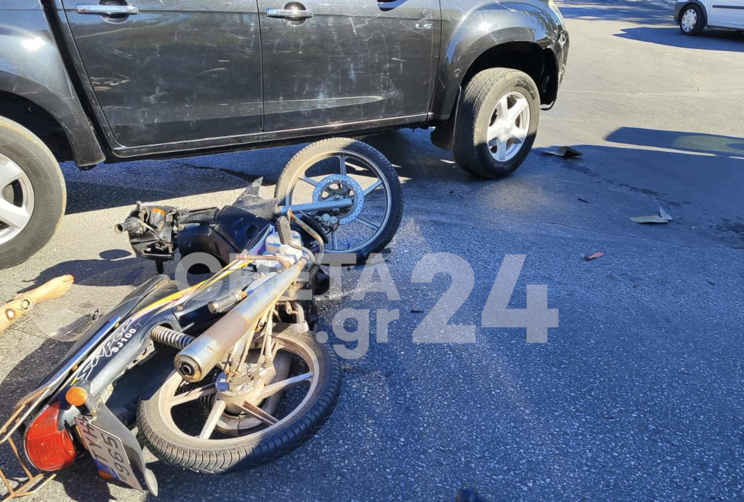 Μοτοσικλέτα συγκρούστηκε κάτω από αδιευκρίνιστες συνθήκες με αγροτικό όχημα, με αποτέλεσμα η οδηγός του δίκυκλου να βρεθεί τραυματισμένη στο οδόστρωμα.