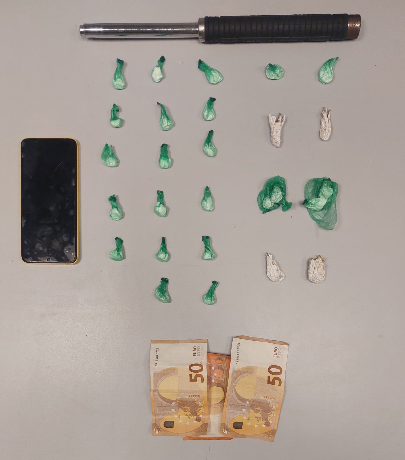 - Είκοσι εφτά αυτοσχέδιες συσκευασίες (φιξάκια) που περιείχαν συνολικά 24,5 γραμμάρια κοκαΐνης