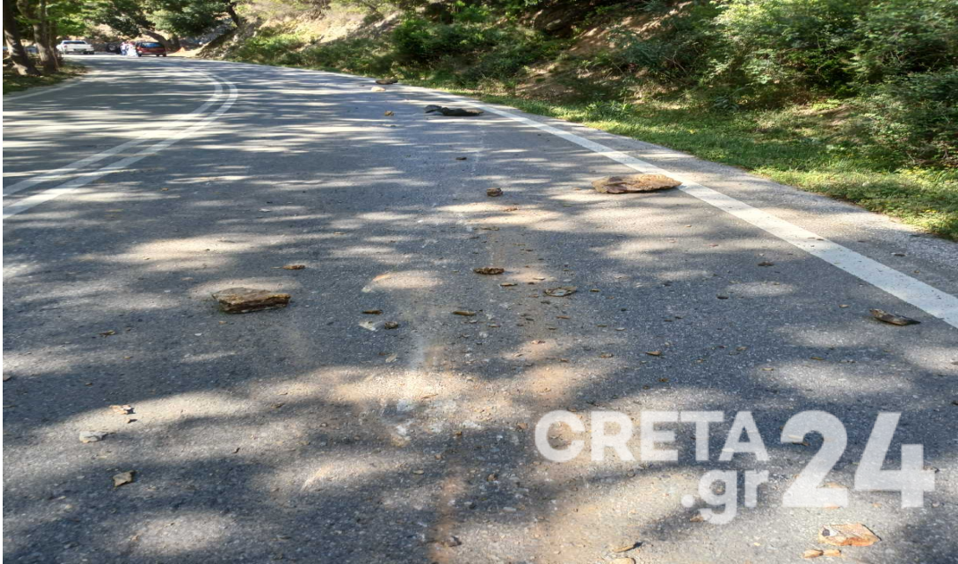 Τμήμα βράχου αποκολλήθηκε και έπεσε πάνω σε διερχόμενο αυτοκίνητο, μεταξύ Κατσοματάδο και Μύλους Κισσάμου, στα Χανιά.
