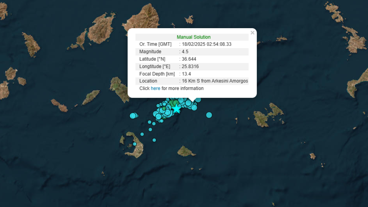 Το επίκεντρο του σεισμού εντοπίζεται στον θαλάσσιο χώρο 16 χιλιόμετρα νότια της Αρκεσίνης Αμοργού και το εστιακό της βάθος στα 13,6 χλμ.