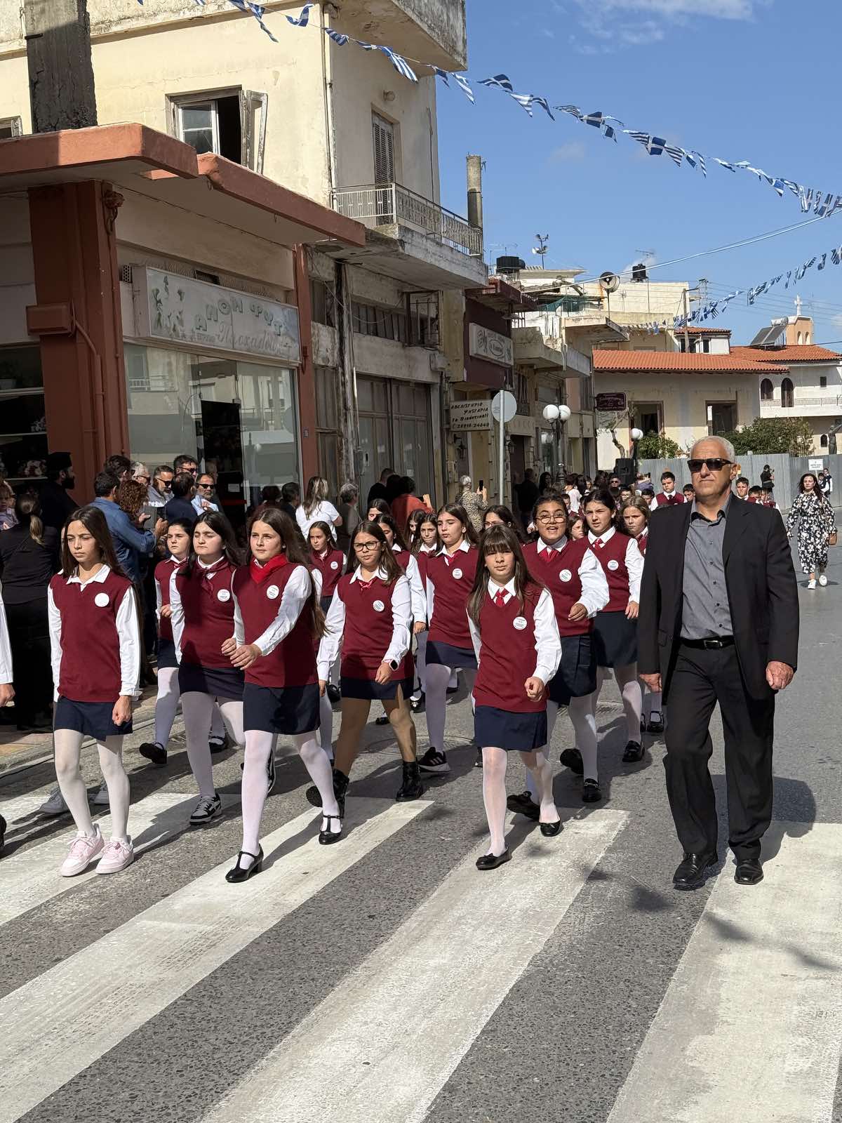 Στο Καστέλλι, η επίσημη δοξολογία τελέστηκε στον Ιερό Ναό Αγίου Γεωργίου. Ακολούθησε επιμνημόσυνη δέηση και κατάθεση στεφάνων στο Ηρώο Πεσόντων και στη συνέχεια πραγματοποιήθηκε η καθιερωμένη παρέλαση, μέσα σε κλίμα συγκίνησης και εθνικής περηφάνειας.