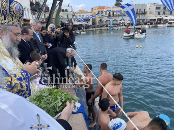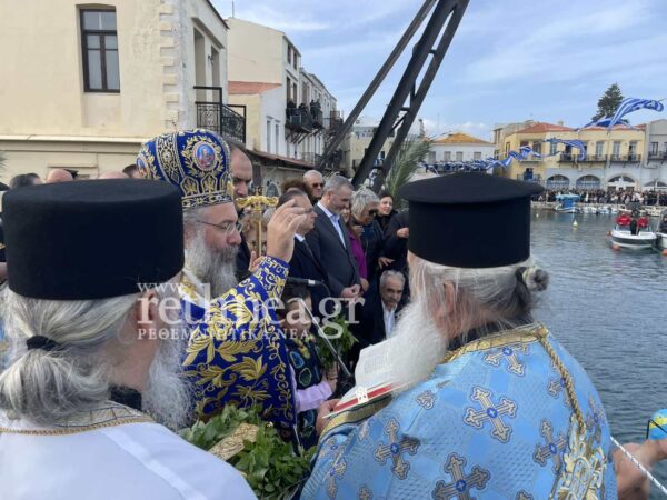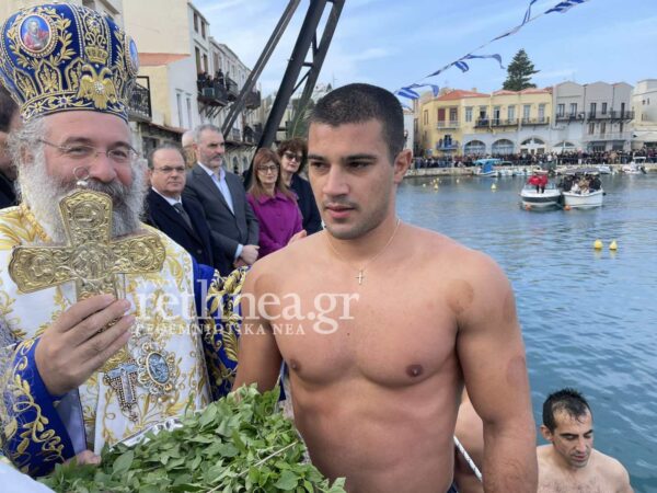 Ο Μητροπολίτης Ρεθύμνης και Αυλοποτάμου Πρόδρομος έψαλλε το “Εν Ιορδάνη Βαπτιζομένου σου Κύριε”, πέταξε τον Σταυρό στη θάλασσα και 34 κολυμβητές βούτηξαν για να τον πιάσουν. Τον Τίμιο Σταυρό έπιασε ο 24χρονος Βαγγέλης Μακρυλάκης.