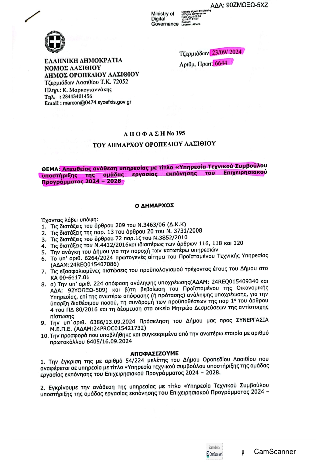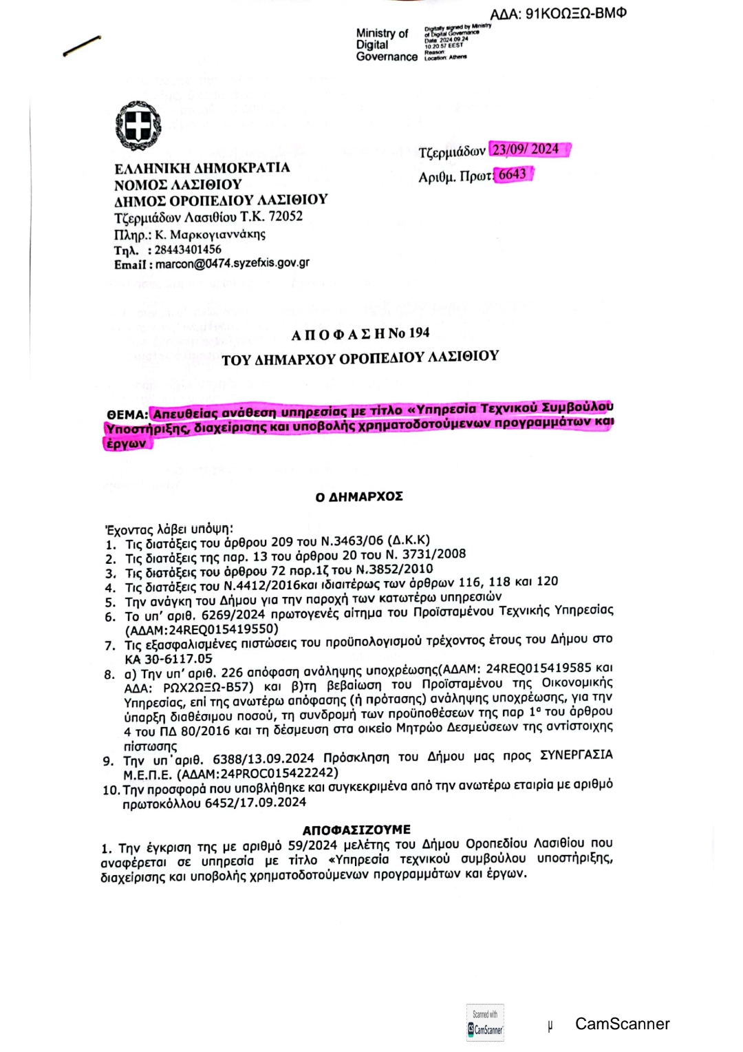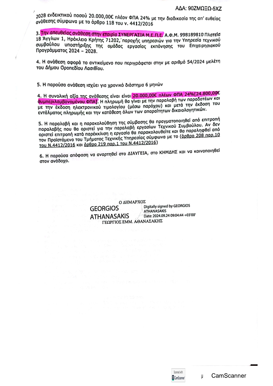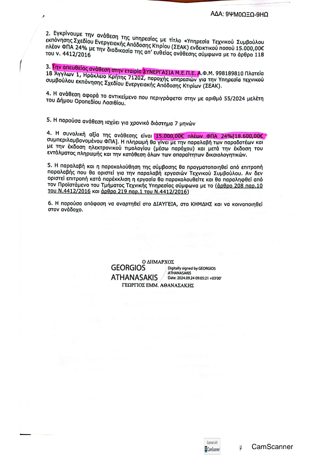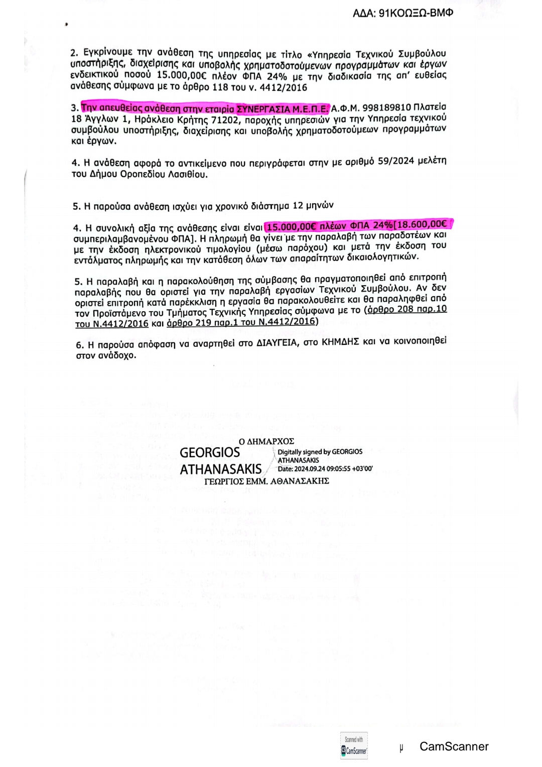 ΣΥΝΟΛΙΚΑ 62.000,00 € απευθείας αναθέσεις στην εταιρεία του αδελφού του νυν αντιδημάρχου κ.Μάνου Περισυνάκη (ΣΥΝΕΡΓΑΣΙΑ Μ.Ε.Π.Ε. Α.Φ.Μ. 998189810 όπως αναφέρεται στο Διαύγεια), που έγιναν την ίδια ημέρα -23 Σεπτεμβρίου 2024-, και στην ίδια εταιρία, όπου ο νυν αντιδήμαρχος υπήρξε επίσης και μέτοχος.