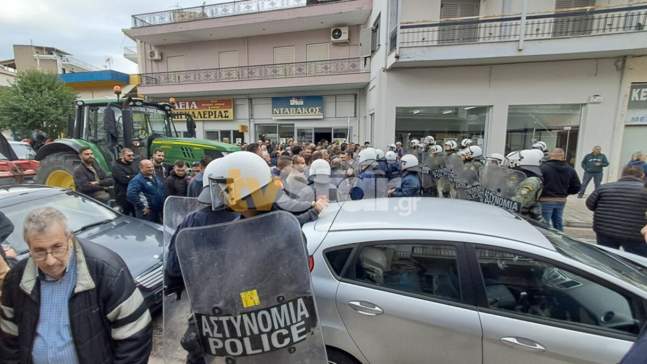Οι συγκεντρωμένοι εισέβαλαν στο Διοικητήριο και περικύκλωσαν τον υπουργό, διαμαρτυρόμενοι για την τακτική του απέναντι στους αγρότες της Βοιωτίας και κάνοντας λόγο για επιχείρηση διάσπασης του αγροτικού κινήματος.