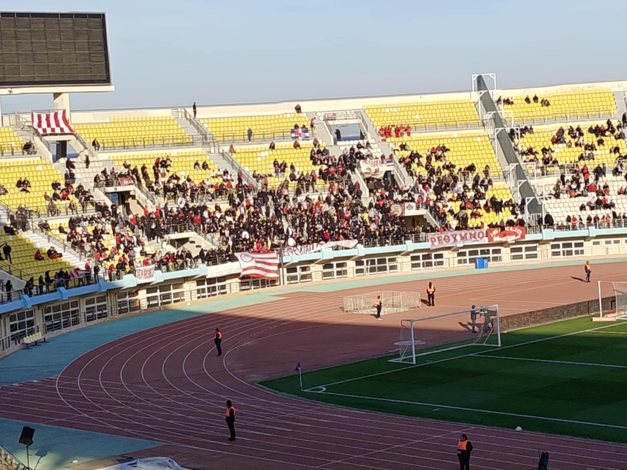 Περίπου 1.30 ώρα πριν την έναρξη του αγώνα, οπαδοί των δύο ομάδων παίρνουν θέση στις εξέδρες