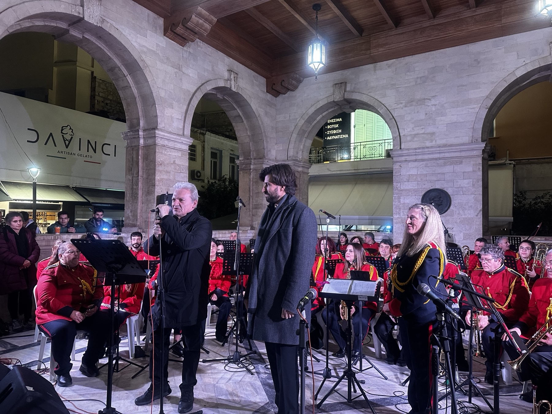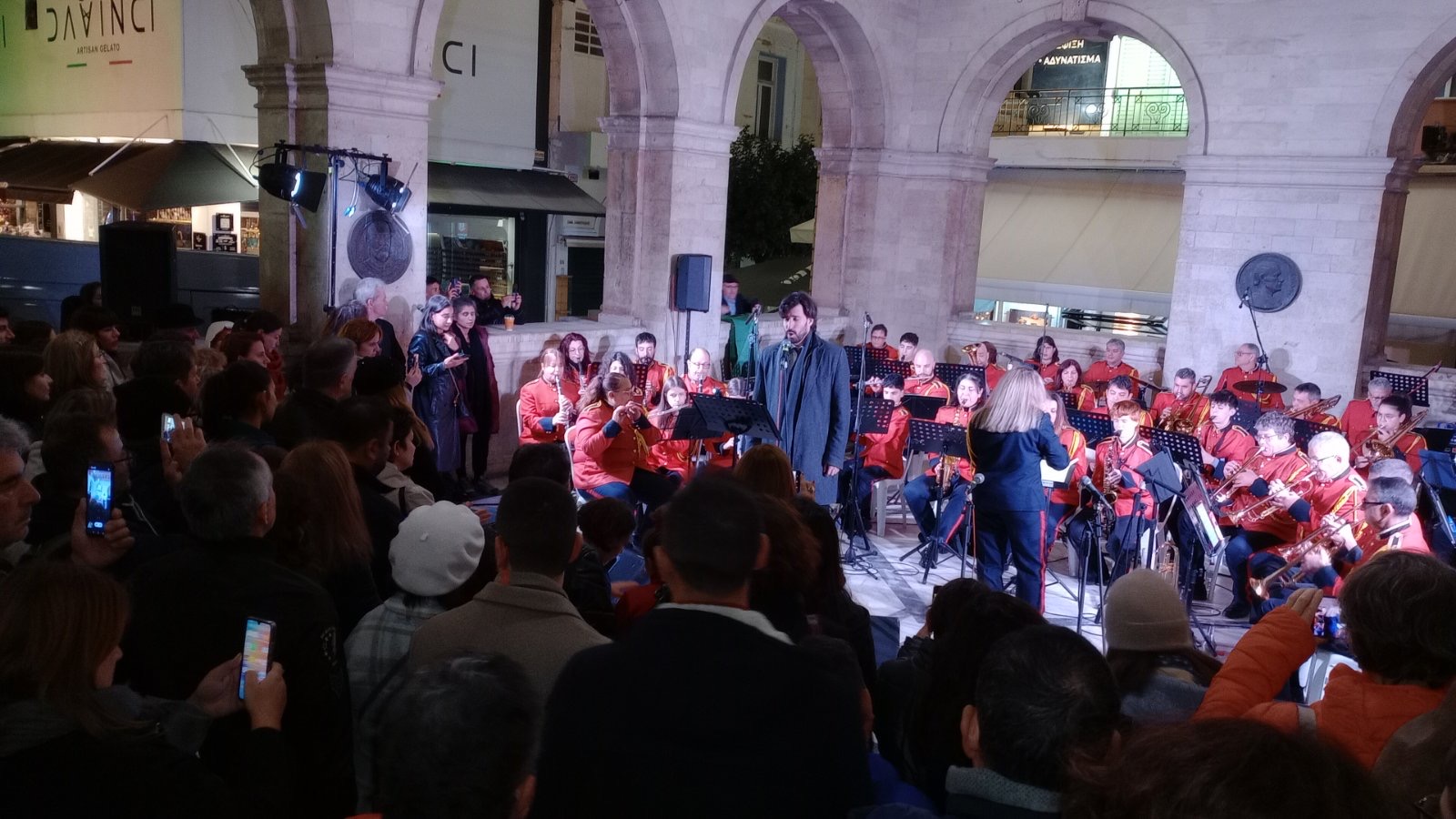 Μάγεψε με τις Χριστουγεννιάτικες μελωδίες της και άλλα τραγούδια η Φιλαρμονική του Δήμου Ηρακλείου τους Ηρακλειώτες, τις Ηρακλειώτισσες αλλά και τους επισκέπτες που βρέθηκαν την Παραμονή των Χριστουγέννων στο αίθριο της Λότζια, για μια μοναδική συναυλία με το βαθύφωνο Μάνο Χριστοφακάκη που καθήλωσε το κοινό με την ερμηνεία του. Την ορχήστρα της Φιλαρμονικής διηύθυνε η αρχιμουσικός Δέσποινα Σκανδαλάκη ενώ την προσαρμογή-ενοργάνωση κομματιών έκανε ο Δημήτρης Βασμαρής.