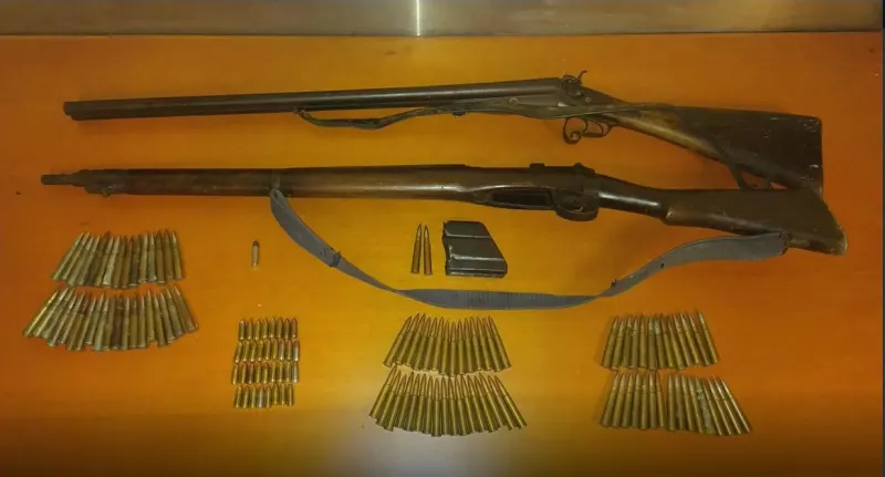 Από τις έρευνες, μεταξύ άλλων, βρέθηκαν και κατασχέθηκαν πολεμικό τυφέκιο με γεμιστήρα, δίκαννο, -2- καραμπίνες, από τις οποίες η μία χωρίς σειριακό αριθμό, -145- φυσίγγια και -9- μαχαίρια, τα οποία θα αποσταλούν για εργαστηριακή εξέταση.