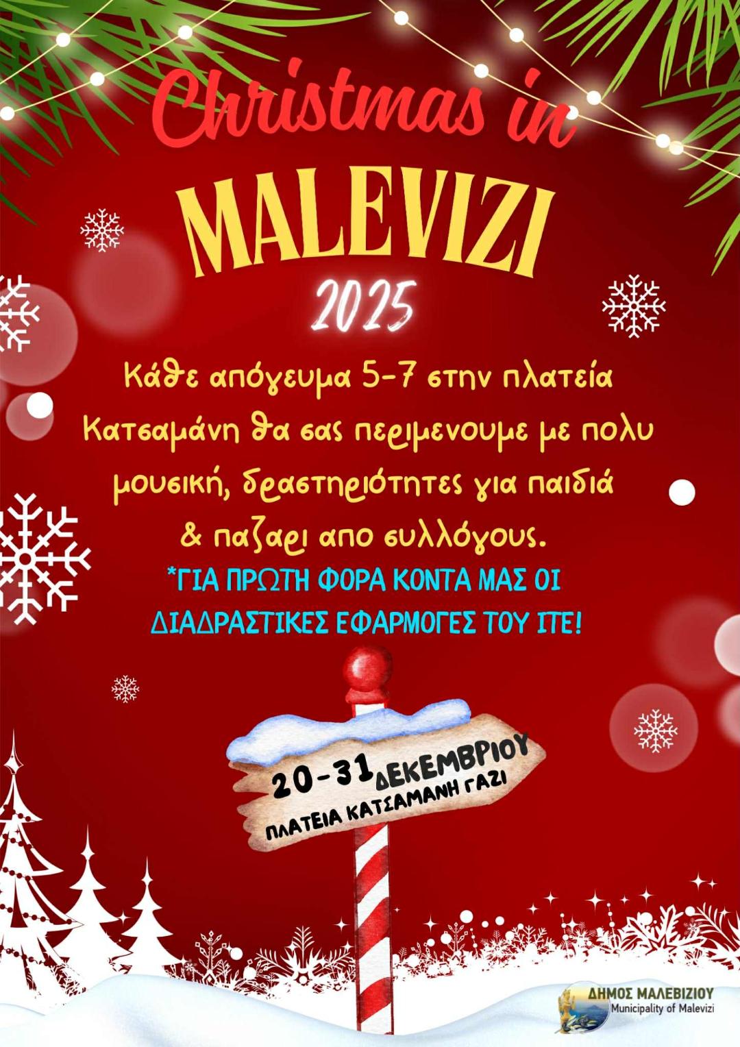Στιγμές χαράς, διασκέδασης και δημιουργικού παιχνιδιού θα έχουν την ευκαιρία να απολαύσουν τα παιδιά που θα επισκεφθούν την πλατεία Μιχ. Κατσαμάνη στο Γάζι, κάθε απόγευμα έως και τις 31 Δεκεμβρίου, στο πλαίσιο των χριστουγεννιάτικων εκδηλώσεων που έχει διοργανώσει ο Δήμος Μαλεβιζίου.