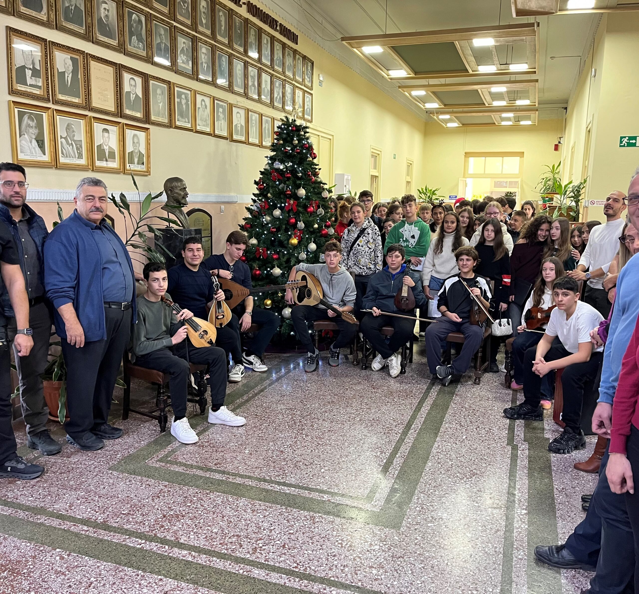Υπό τη διεύθυνση του Καθηγητή Βυζαντινής Μουσικής, κ. Ιωάννη Μαλάκο, οι περίπου 60 μαθητές Γυμνασίου και Λυκείου του Μουσικού Σχολείου έπαιξαν και τραγούδησαν τα Βυζαντινά Κάλαντα, τα Κάλαντα της Ικαρίας, και τα Κάλαντα της Κρήτης, παρουσία και του Περιφερειακού Συμβούλου και Προέδρου της Περιφερειακής Αναπτυξιακής Εταιρείας Κρήτης Α.Ε. κ. Ευστράτιου Φλεμετάκη, όπως και των υπαλλήλων της Π.Ε. Χανίων.